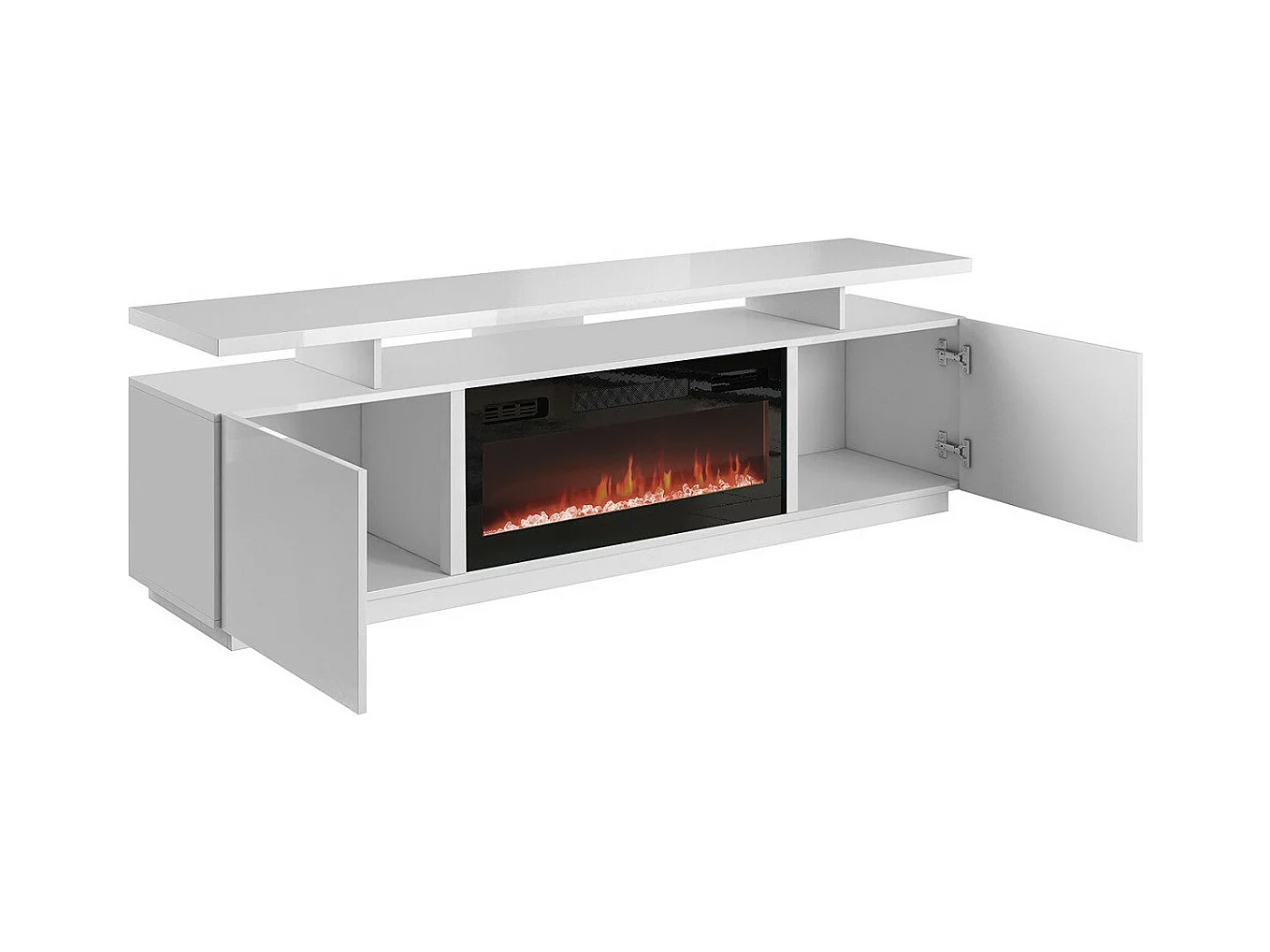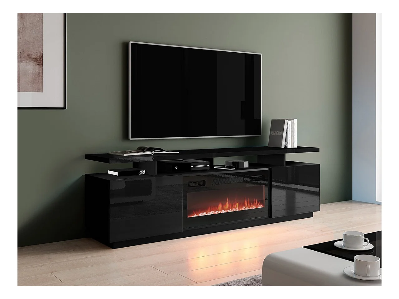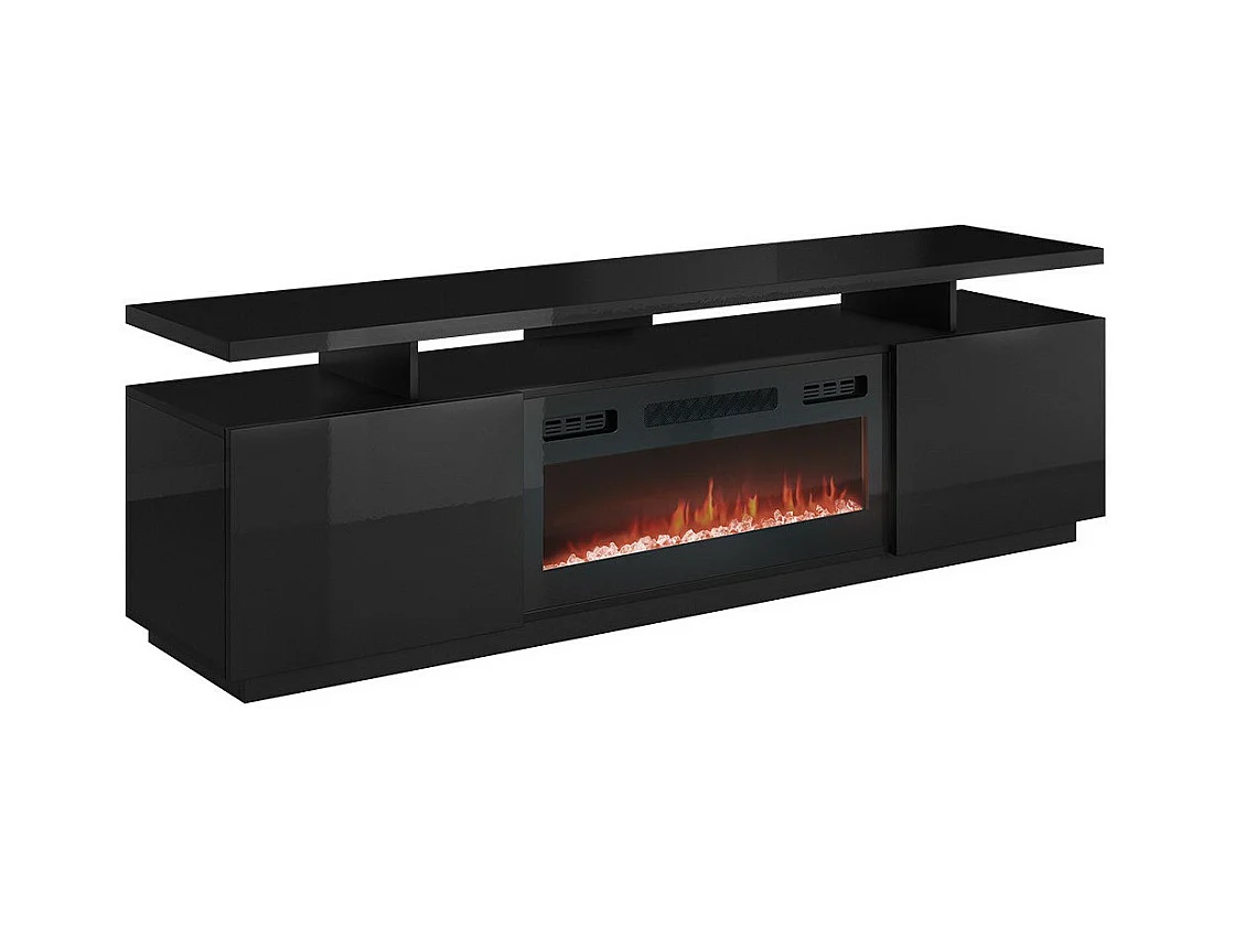 Meuble TV Charlotte 151, Noir brillant|Noir, Le nombre de portes: 2, 180x56x40cm