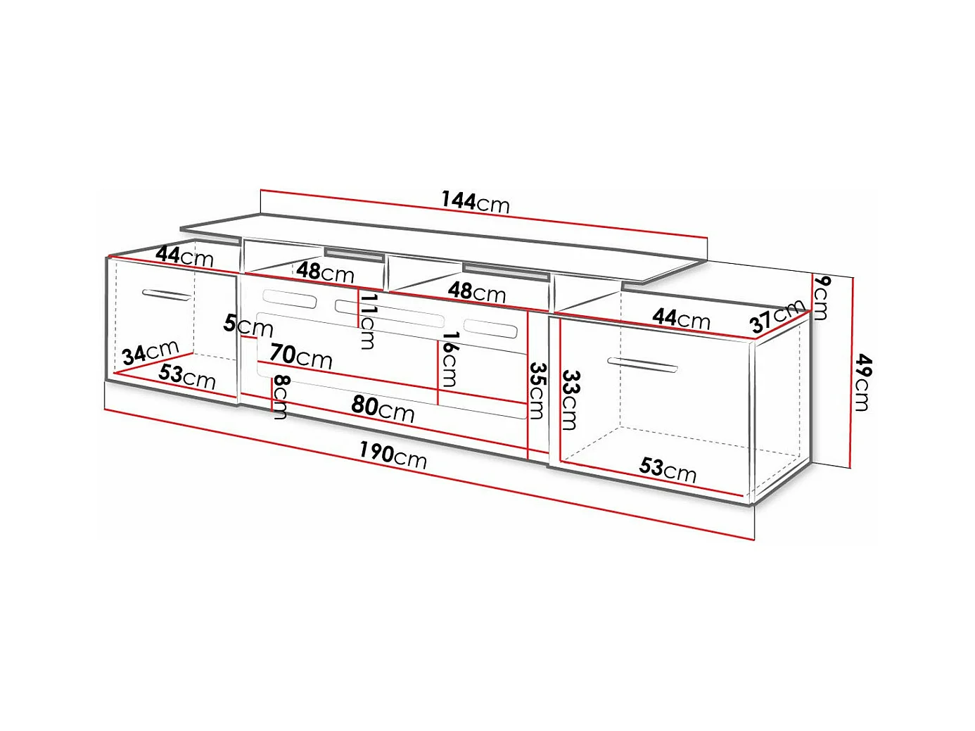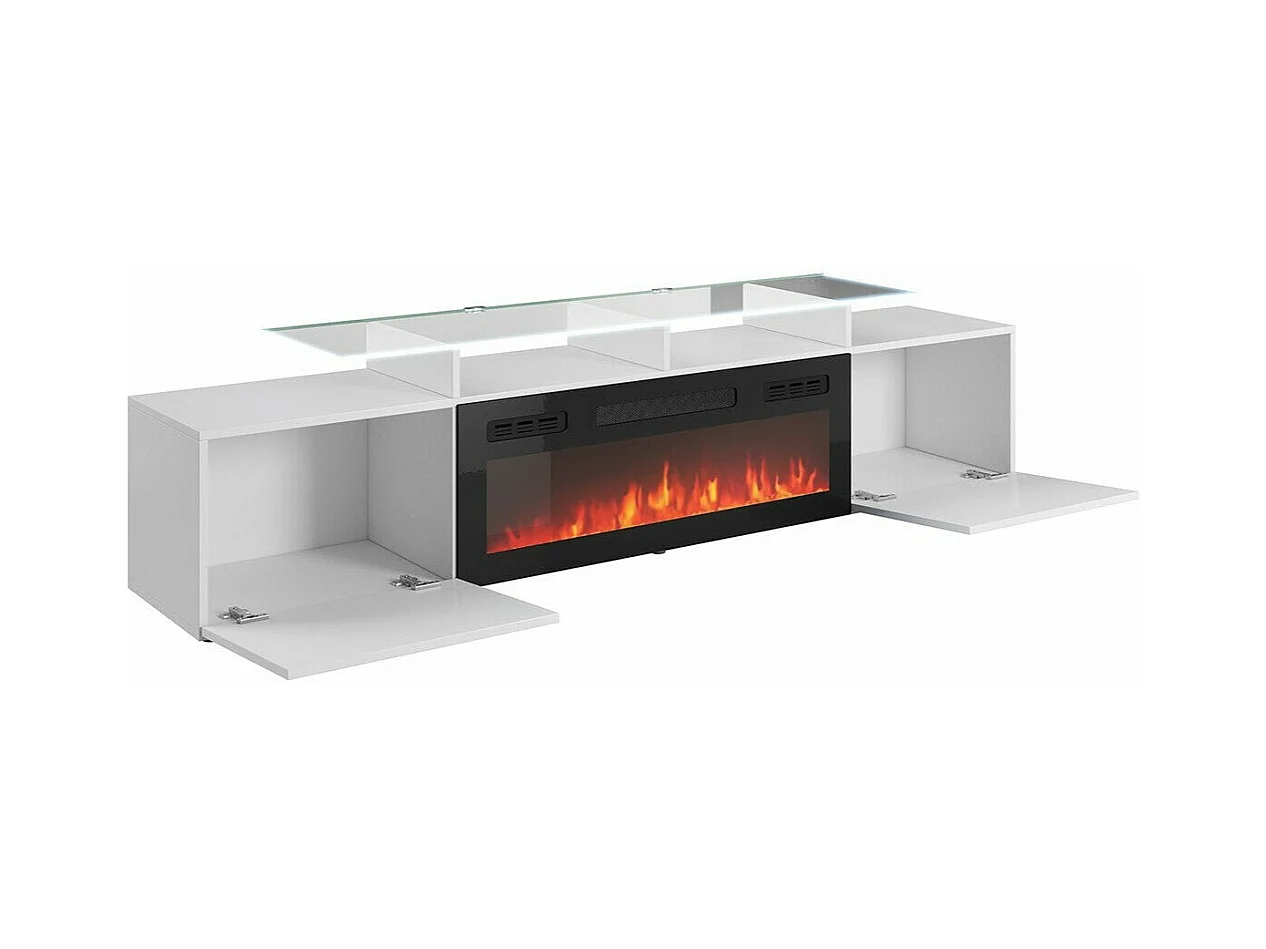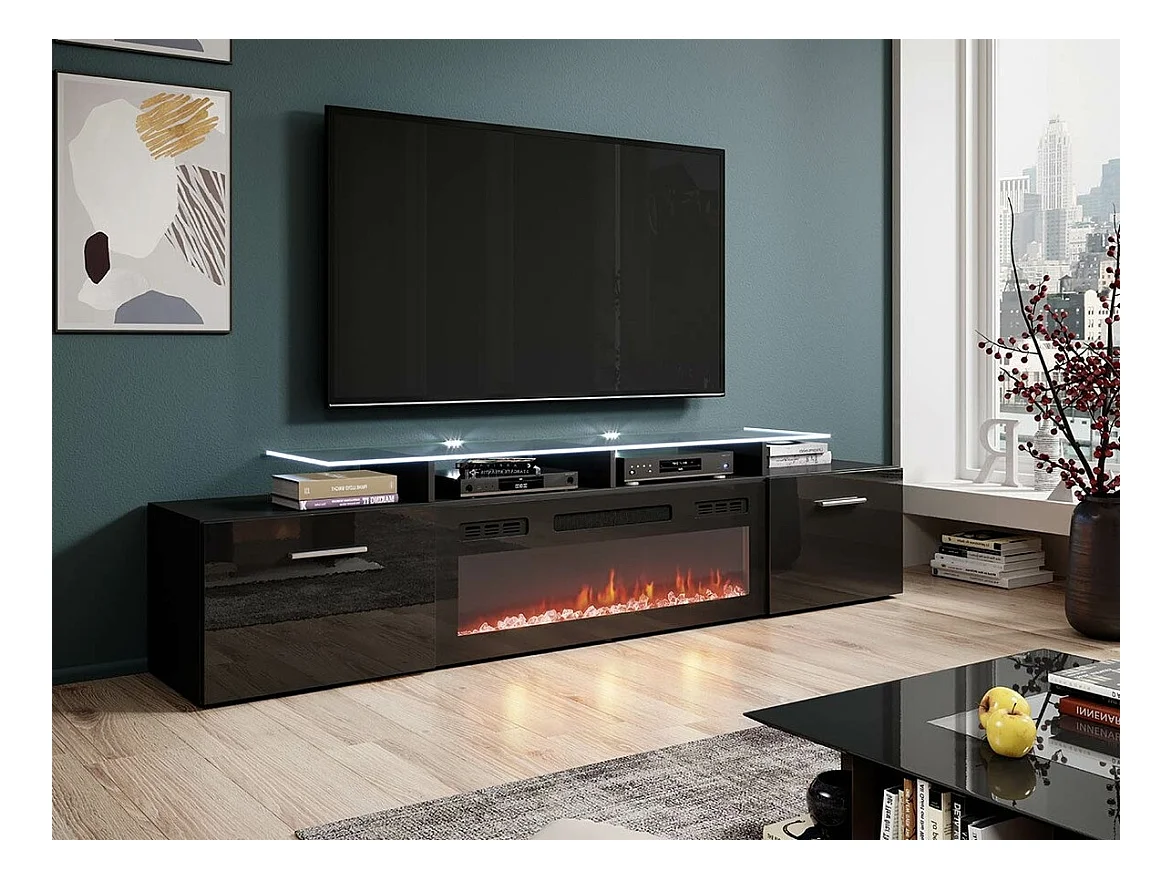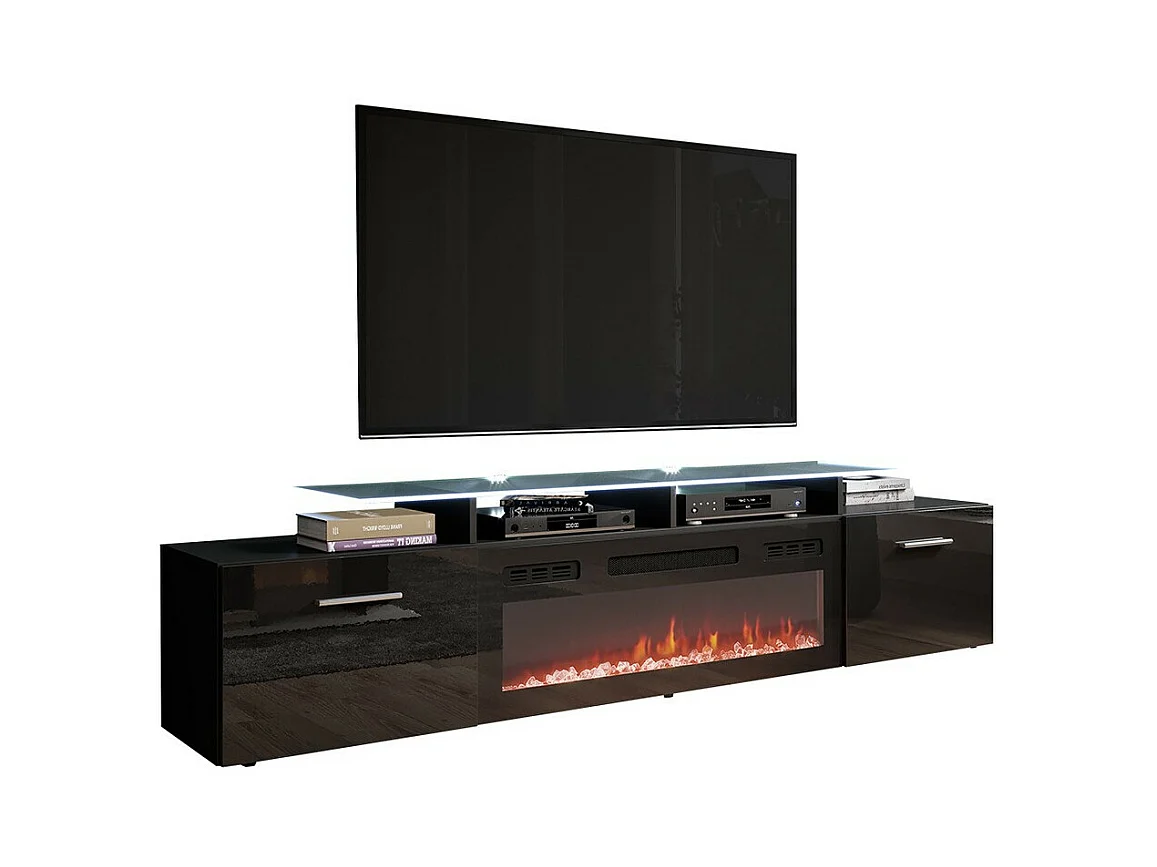 Meuble TV Charlotte 155, Noir brillant|Noir, Le nombre de portes: 2, 190x49x37cm