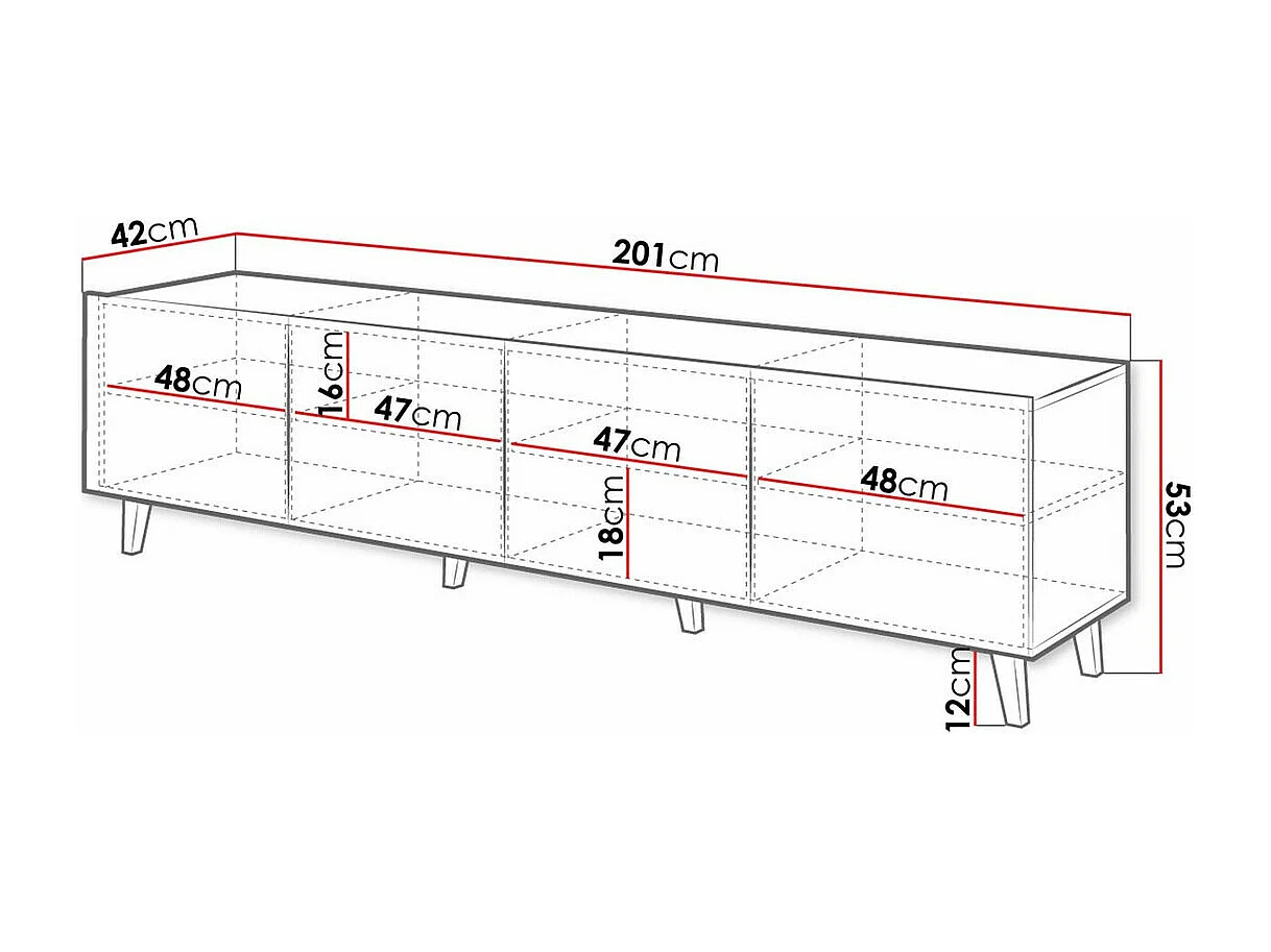 Meuble TV Charlotte 181, Craft chêne|Noir, Le nombre de portes: 4, 201x53x42cm