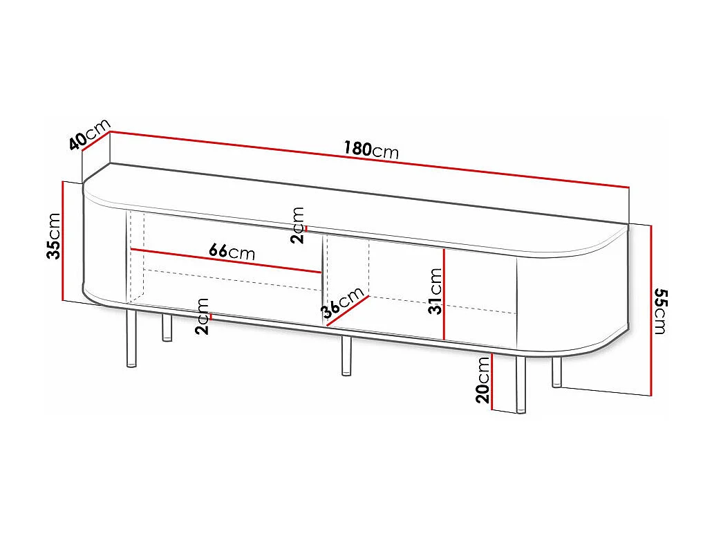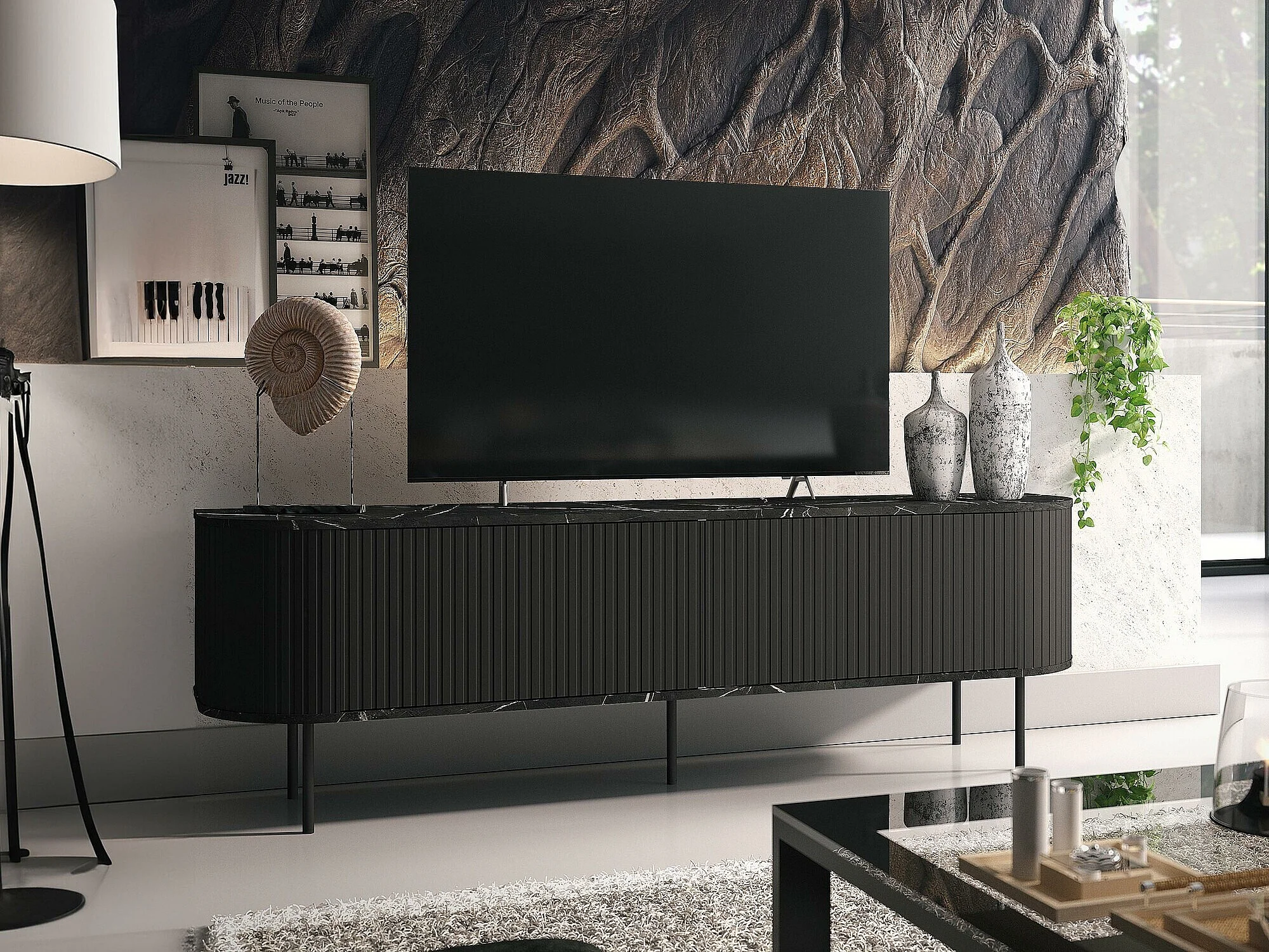 Meuble TV Charlotte 196, Marbre noir|Noir, 180x55x40cm
