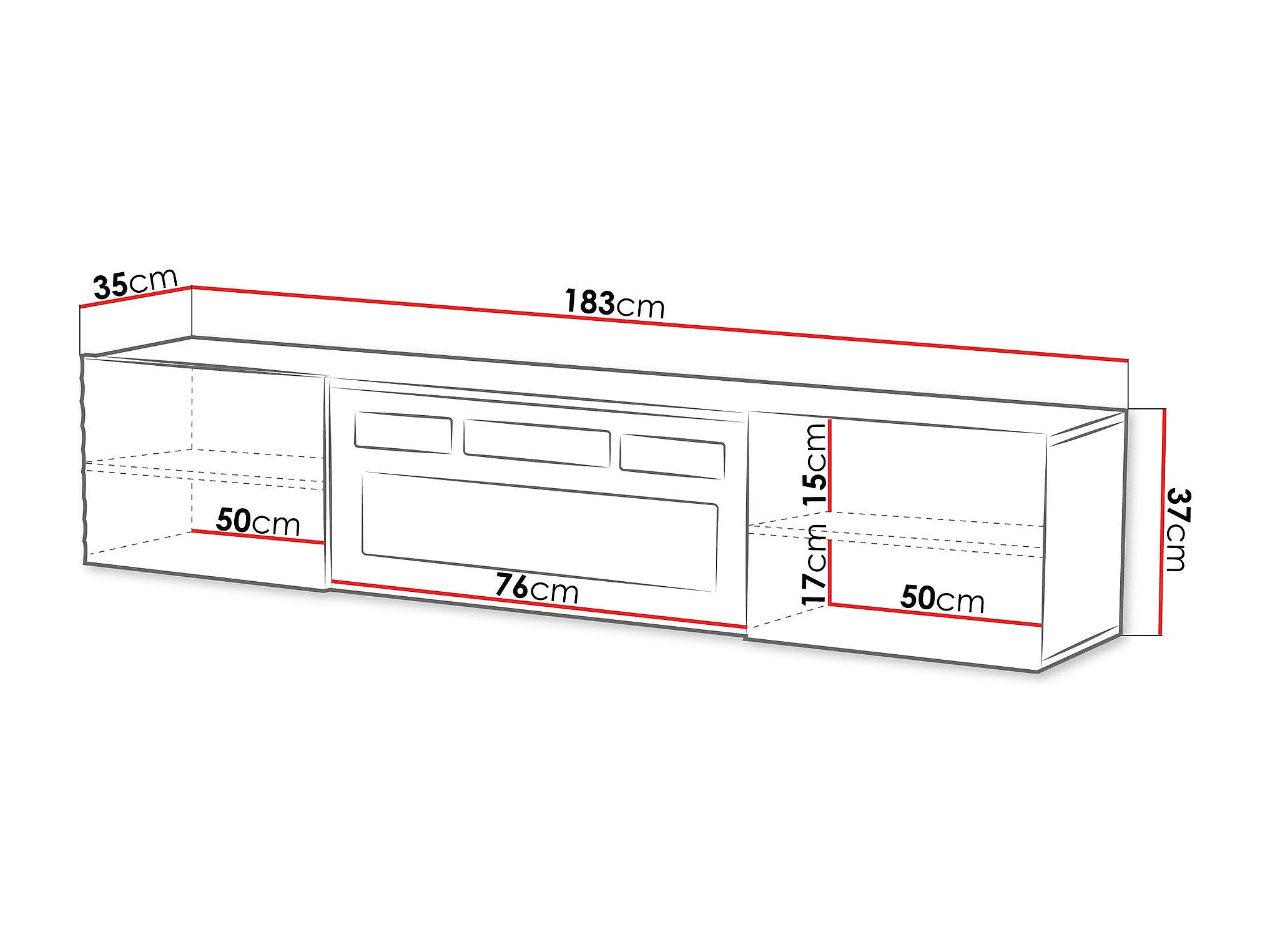 Meuble TV Charlotte 206, Blanc, 183x37x35cm