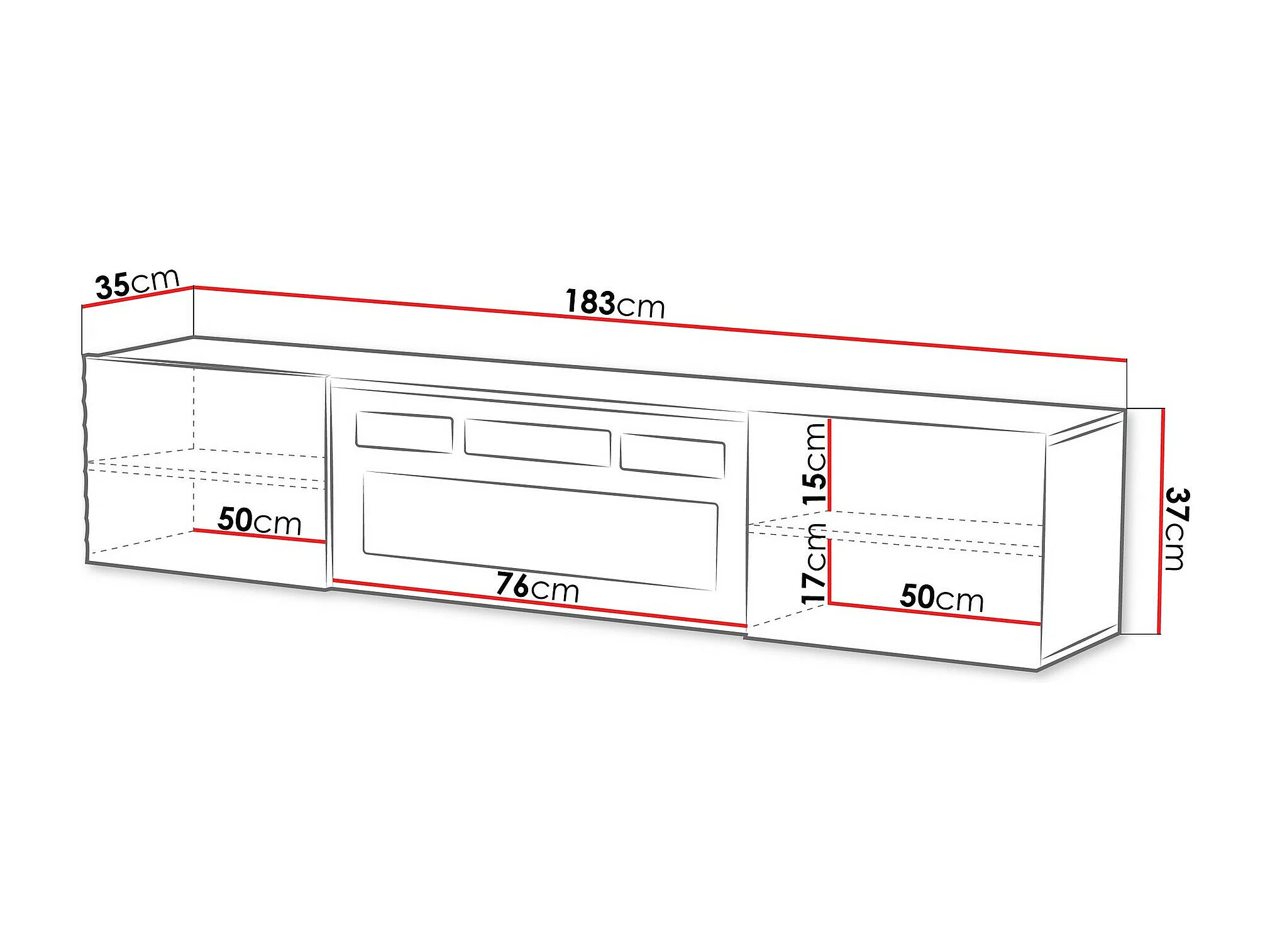Meuble TV Charlotte 206, Noir, 183x37x35cm