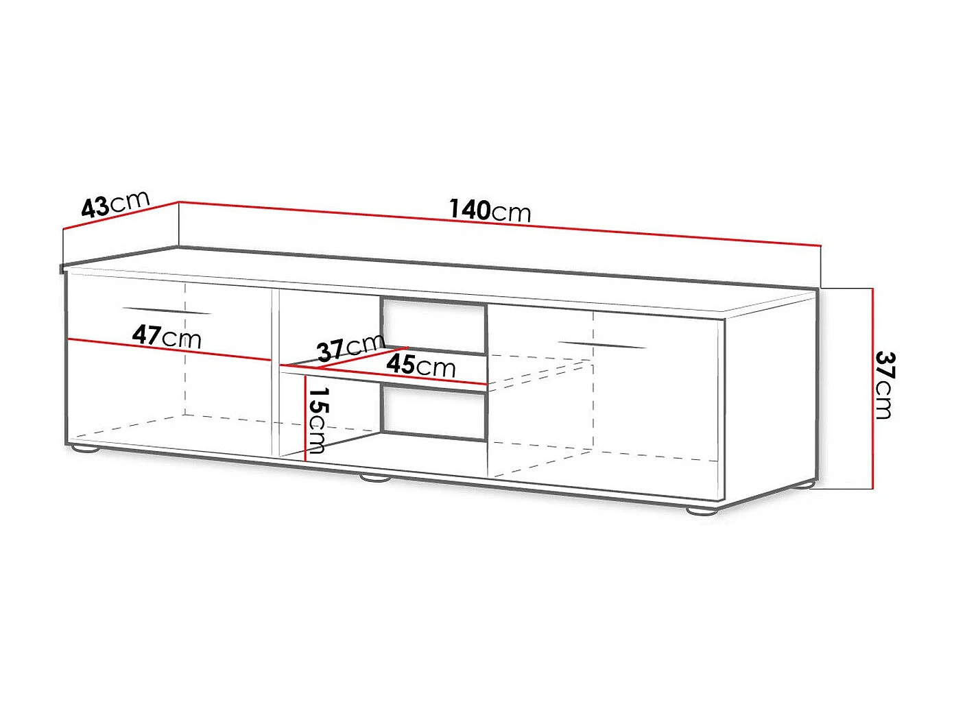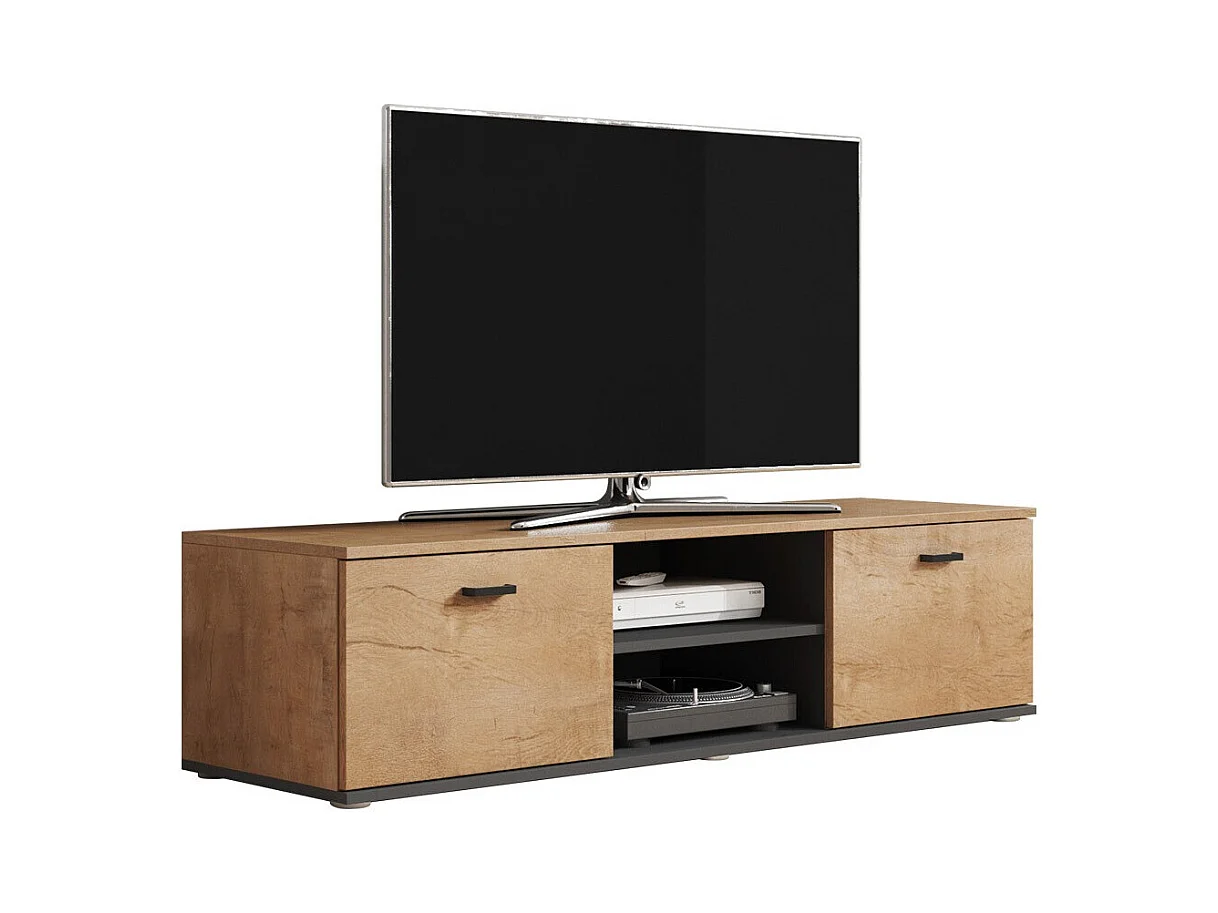 Meuble TV Tornola 100, Chêne de Lefkas|Noir, Le nombre de portes: 2, 140x37x43cm