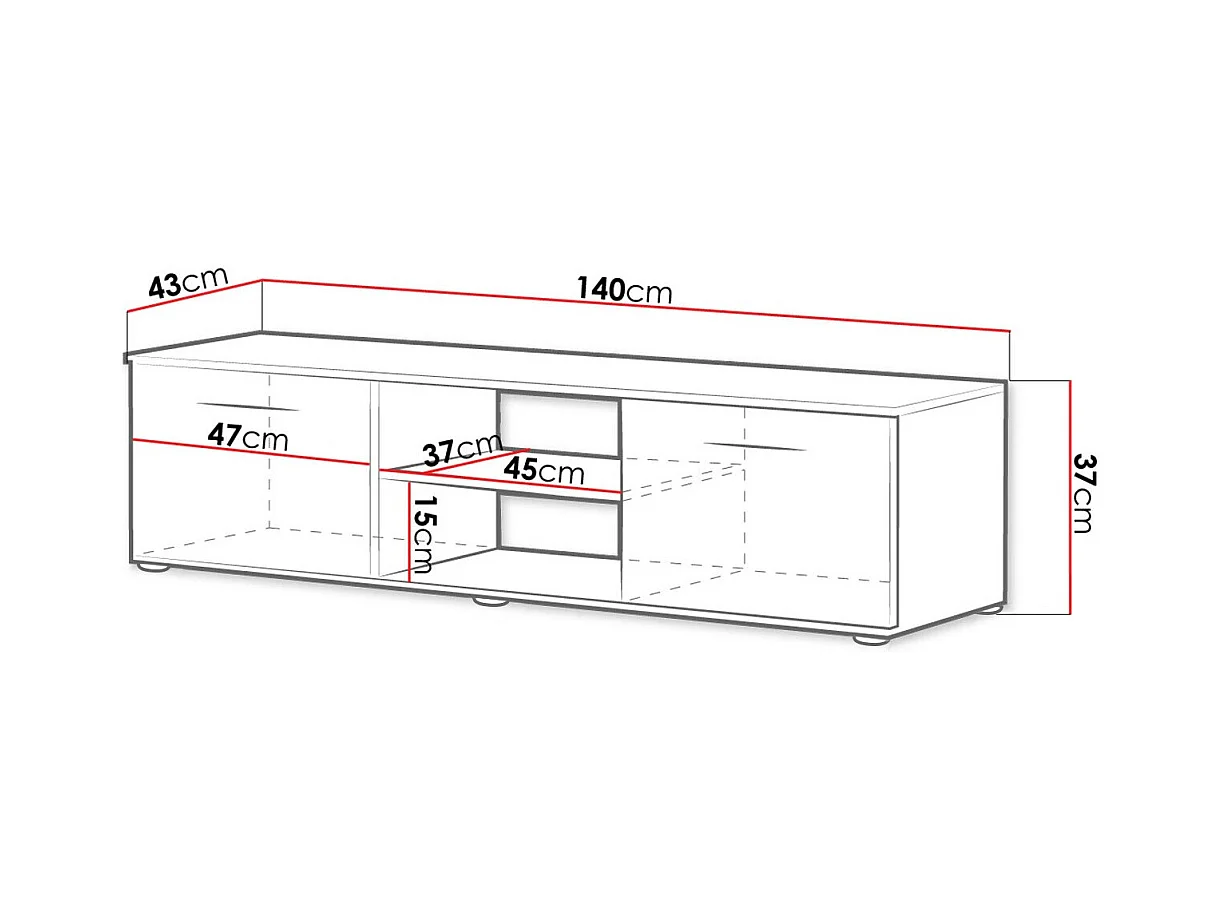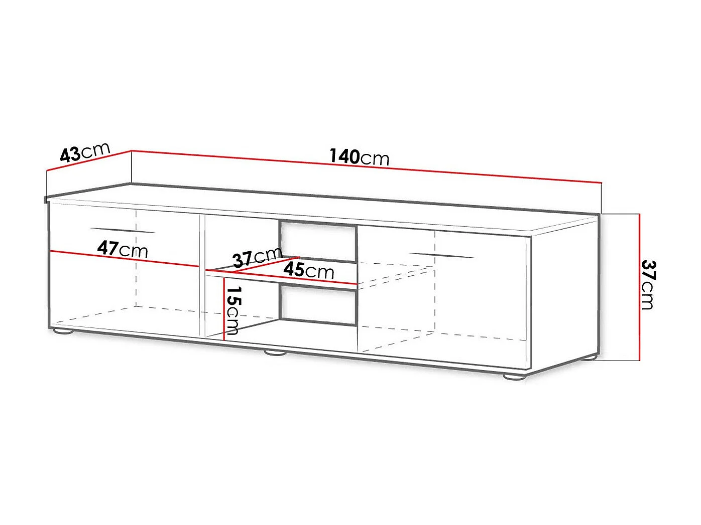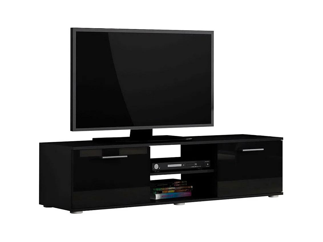 Meuble TV Tornola 100, Noir brillant|Noir, Le nombre de portes: 2, 140x37x43cm