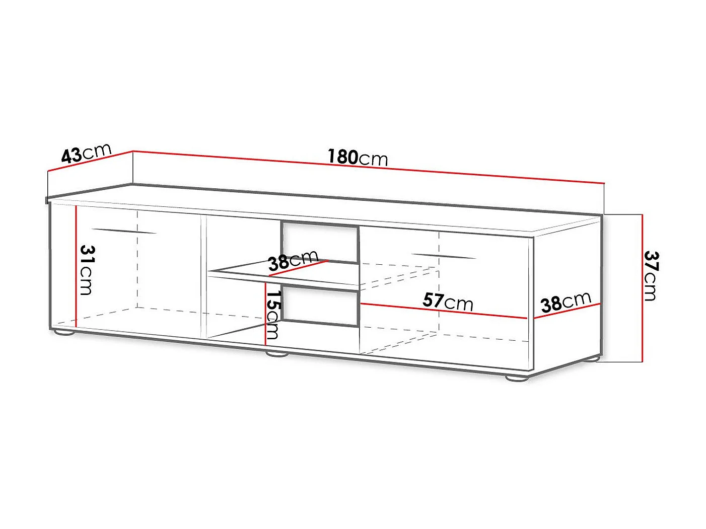 Meuble TV Tornola 101, Noir|Noir brillant, Le nombre de portes: 2, 180x37x43cm