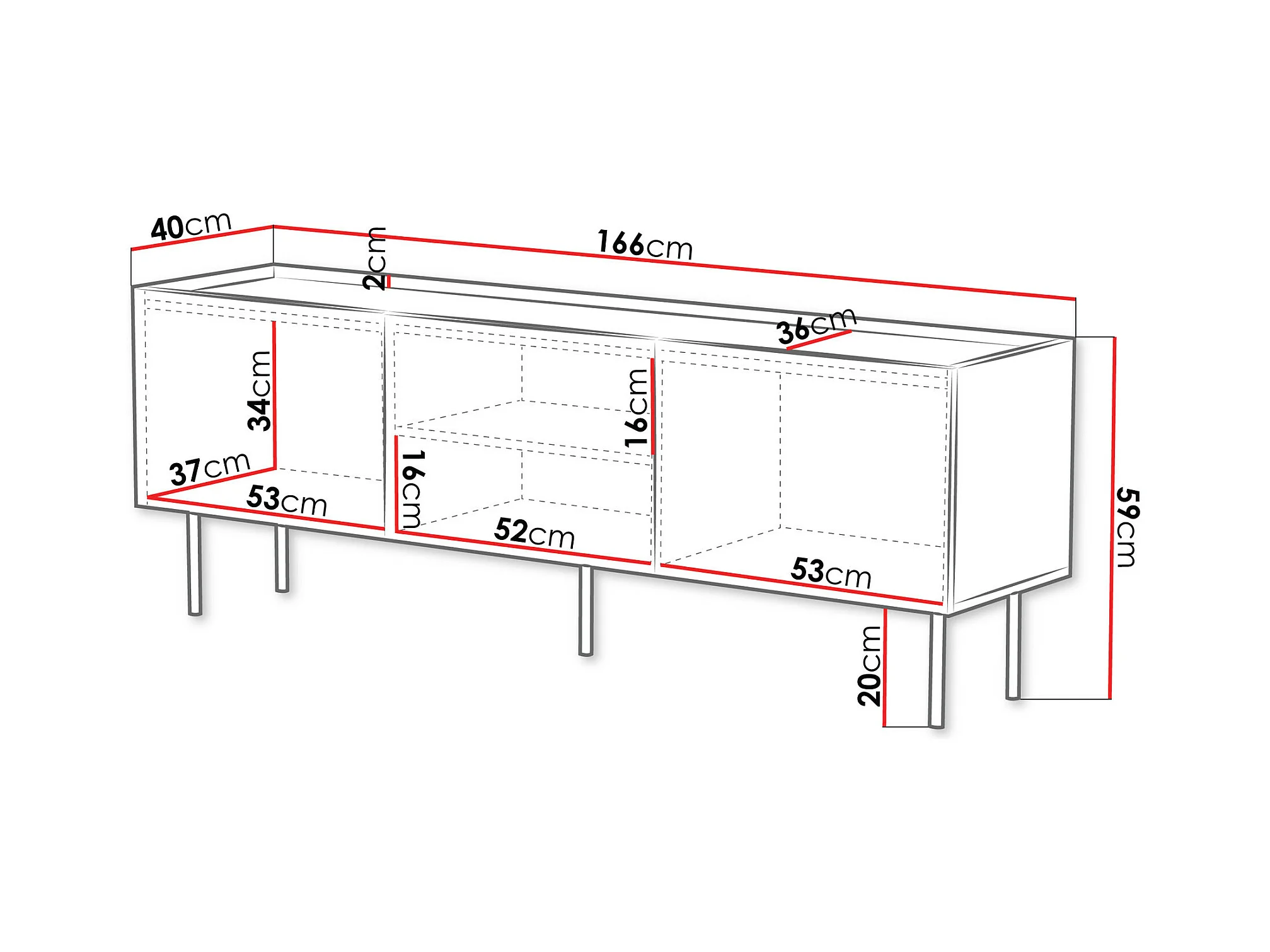 Meuble TV Mortali 103, Noir, 166x59x40cm