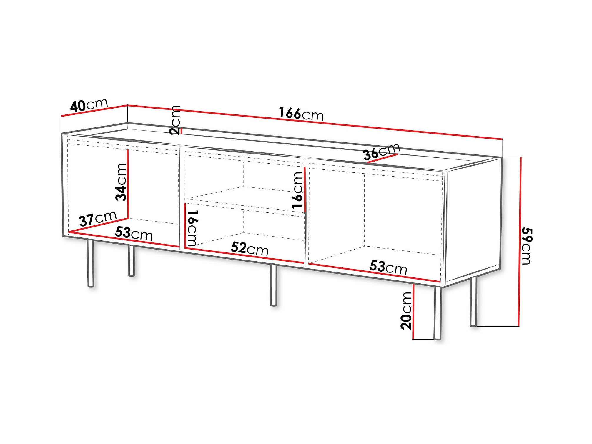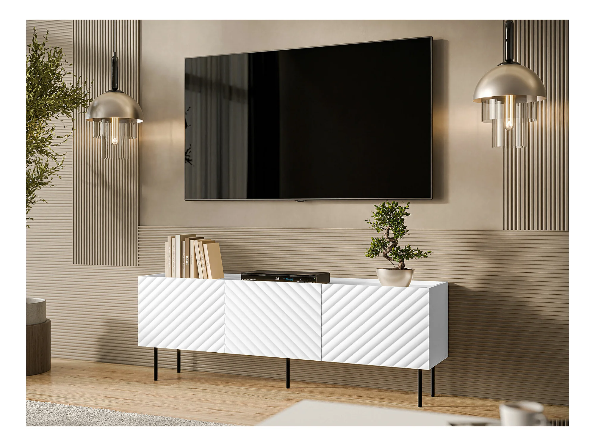 Meuble TV Mortali 103, Noir|Blanc, 166x59x40cm