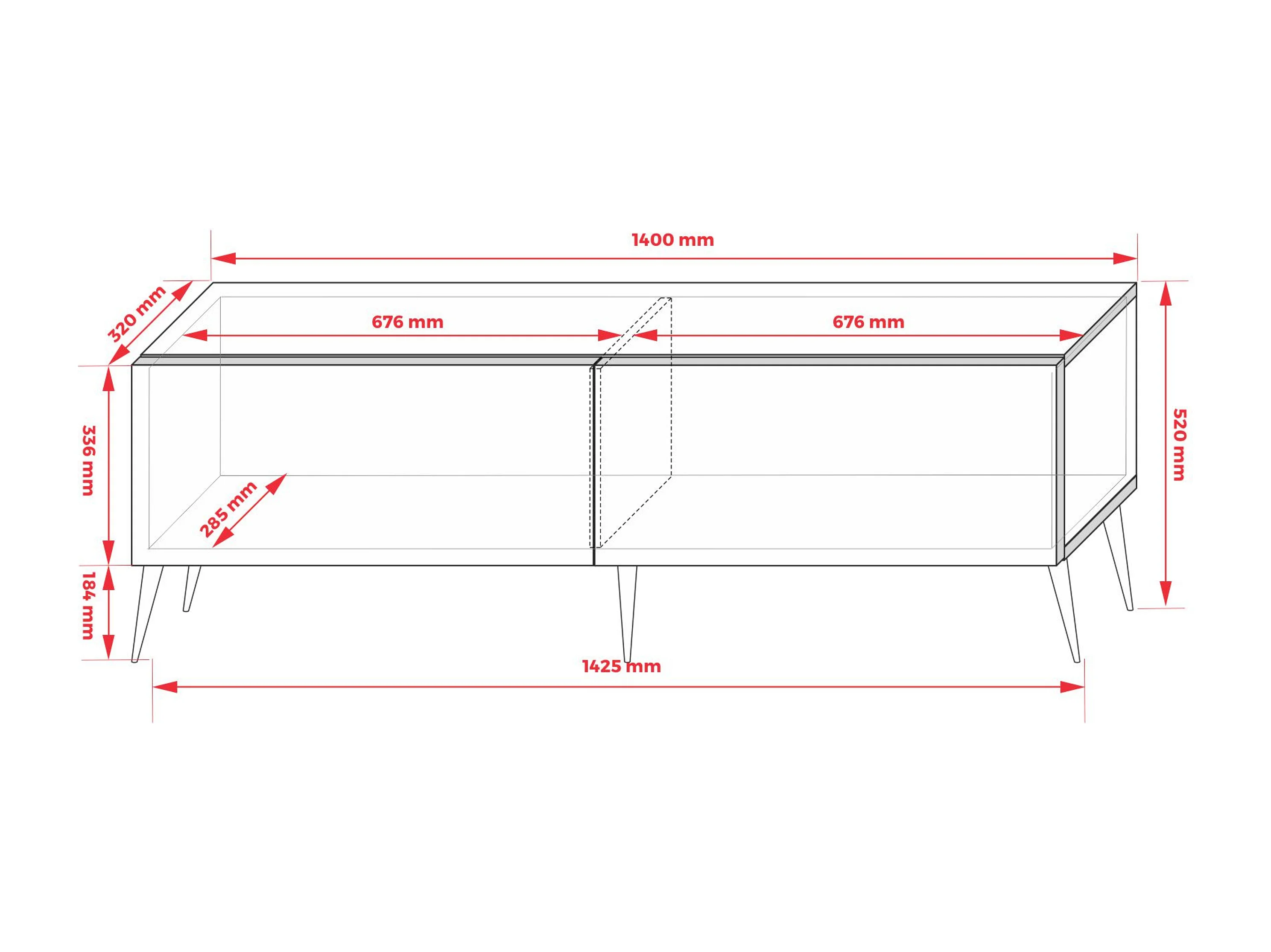 Meuble TV : Chêne Wotan / Noir Mat, pieds dorées, 140 x 52 x 32 cm