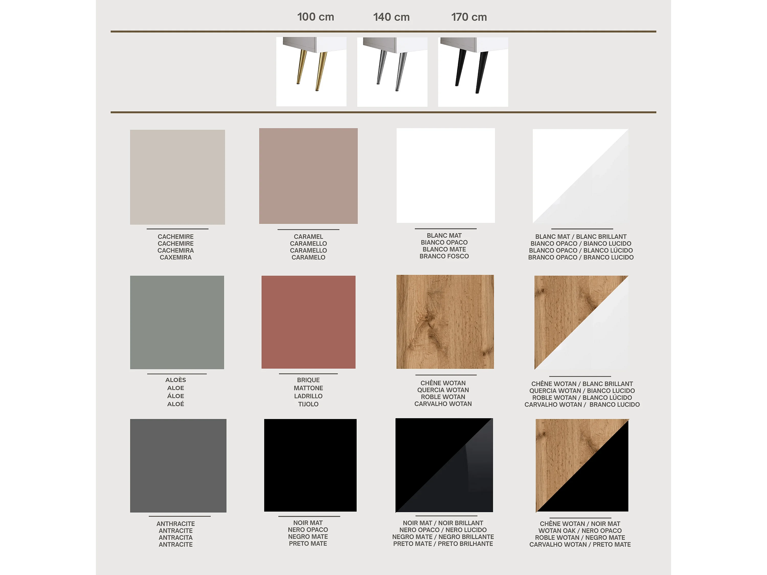 Meuble TV : Chêne Wotan / Noir Mat, pieds dorées, 170 x 52 x 32 cm