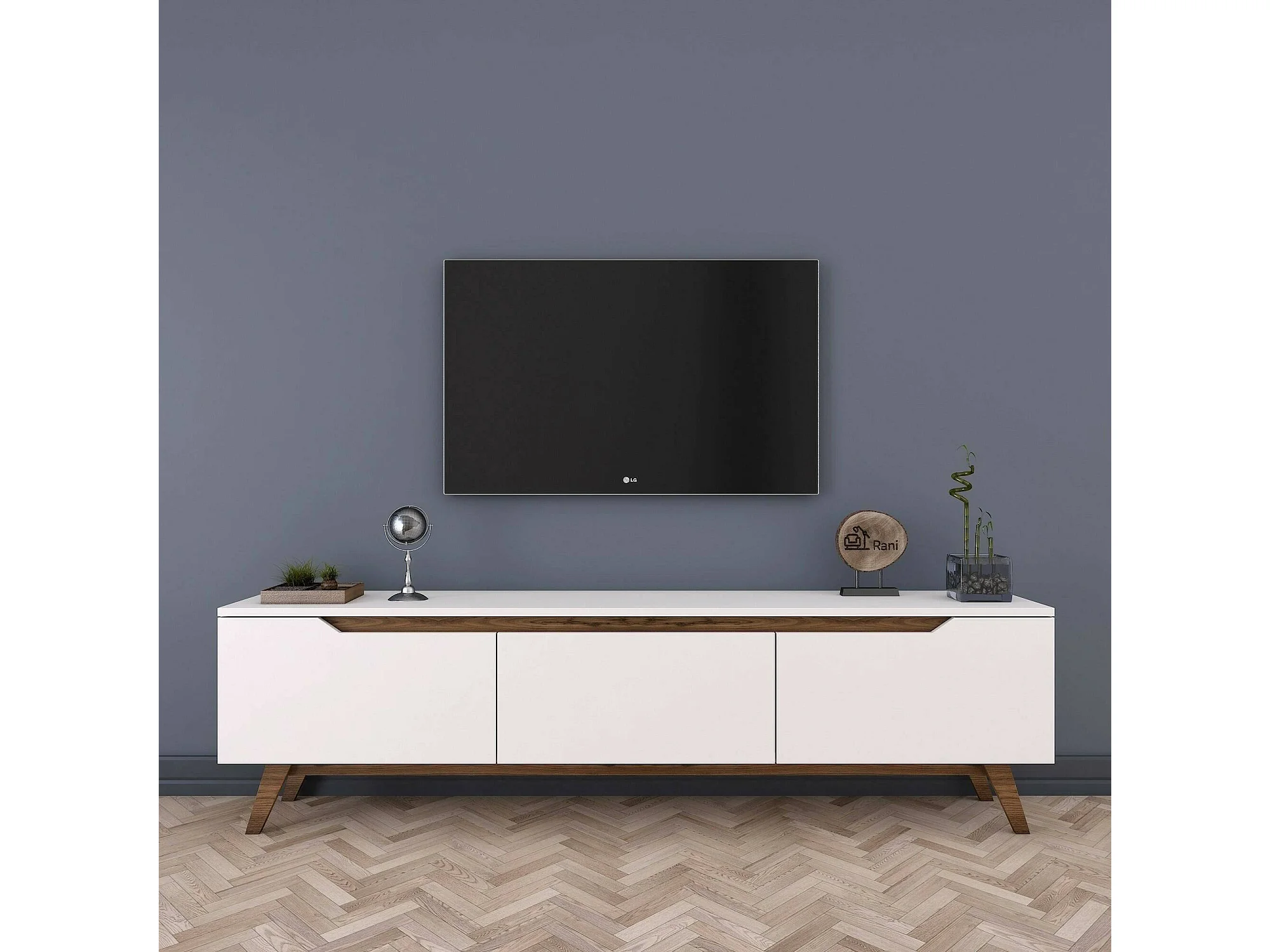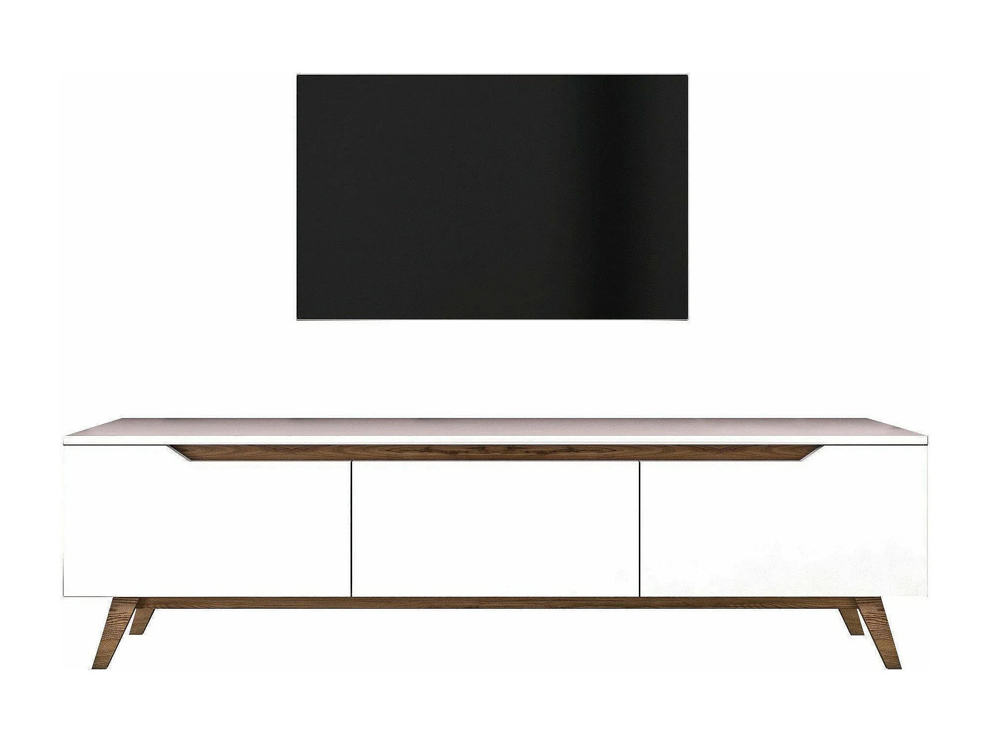 Meuble TV Cor, Buffet de salon, Armoire basse pour TV, Base murale de rangement, 180x35h49 cm, Blanc et Noyer