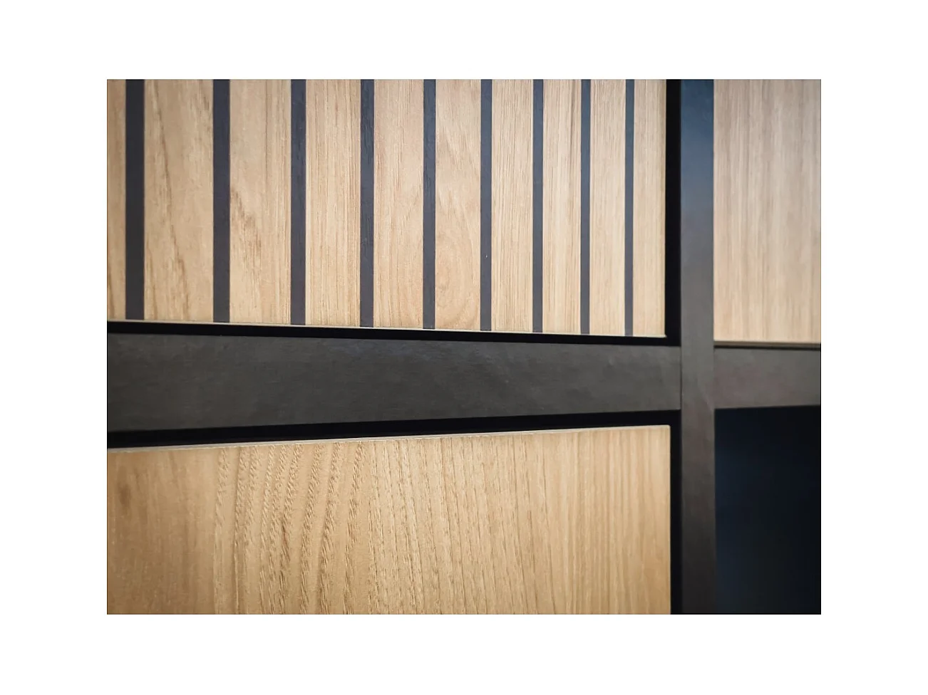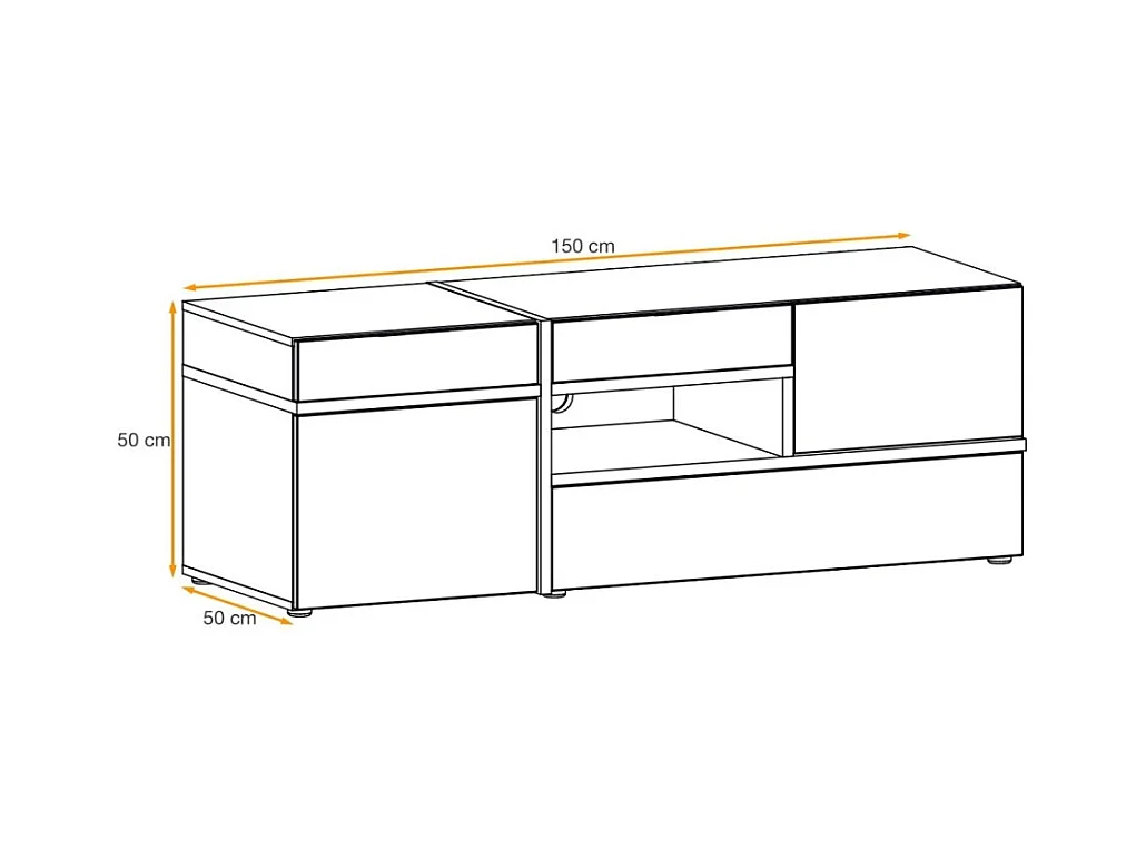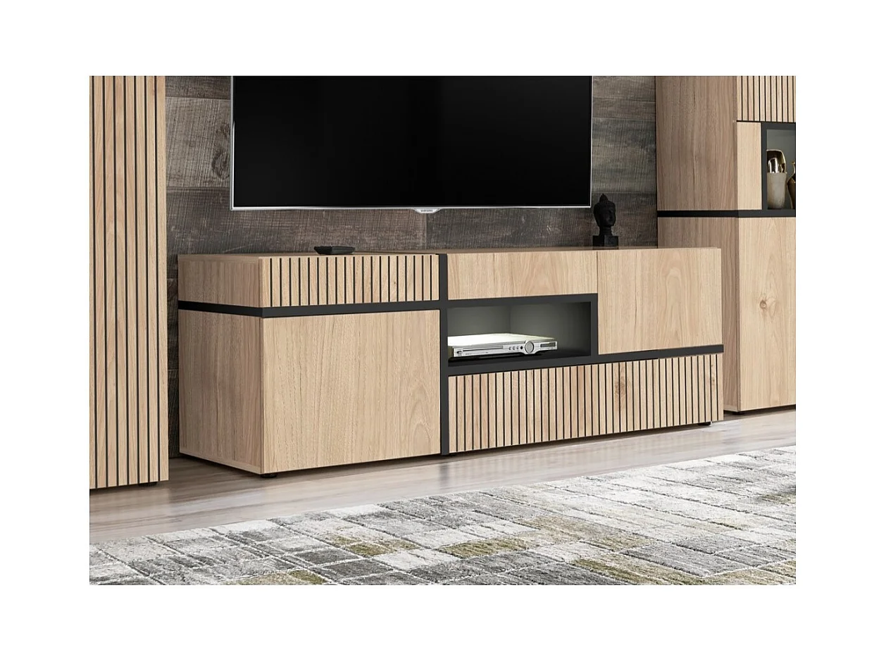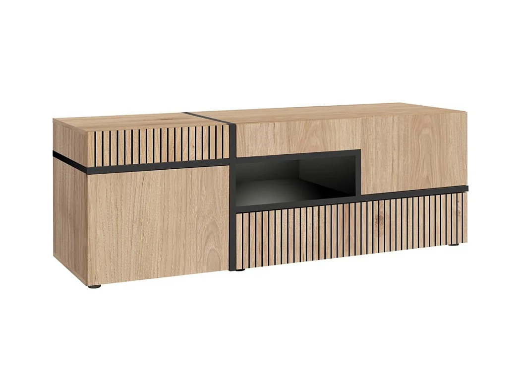 Meuble TV CRISS – 2 portes, 1 tiroir, LED – Chêne clair et noir