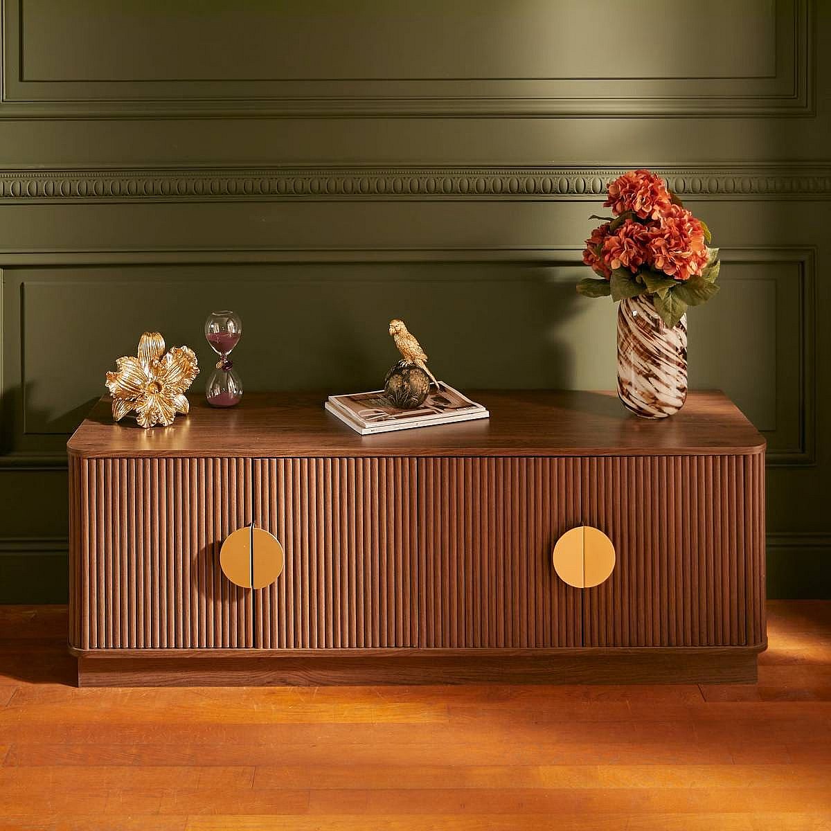 Meuble TV de 4 portes 2 coloris noyer - Longueur 140 x Profondeur 40 x Hauteur 48 cm