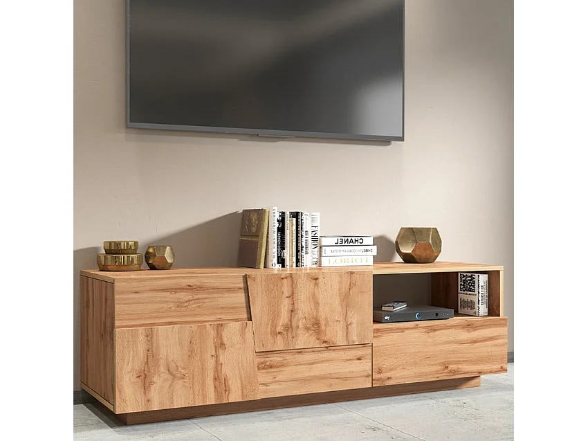 Meuble TV de salon moderne 2 portes 1 tiroir 150x44x46cm Trevis