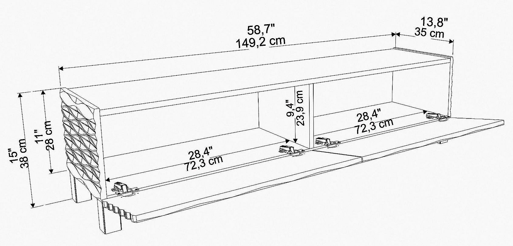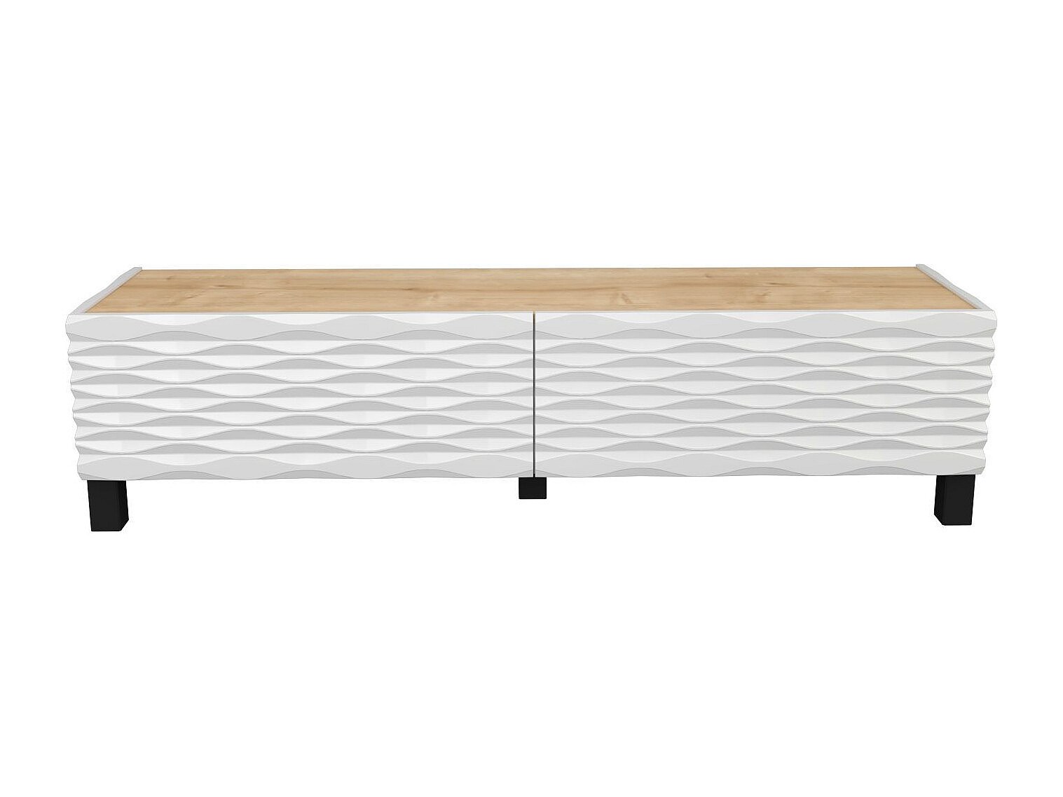 Meuble TV design 2 portes basculantes Vanoise 149cm Blanc et Chêne clair