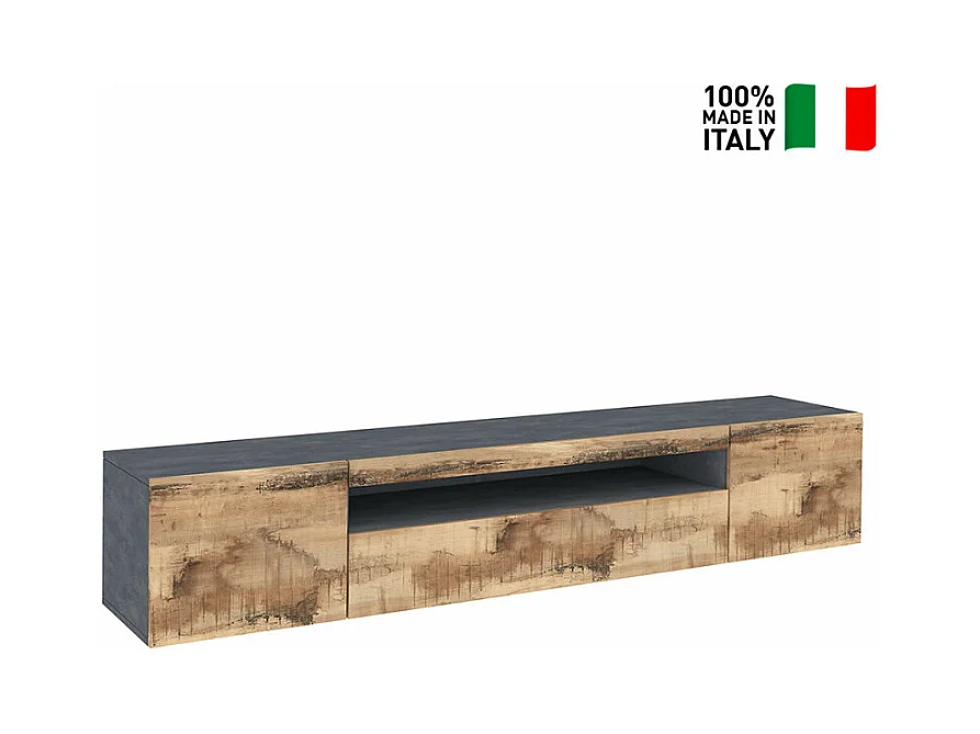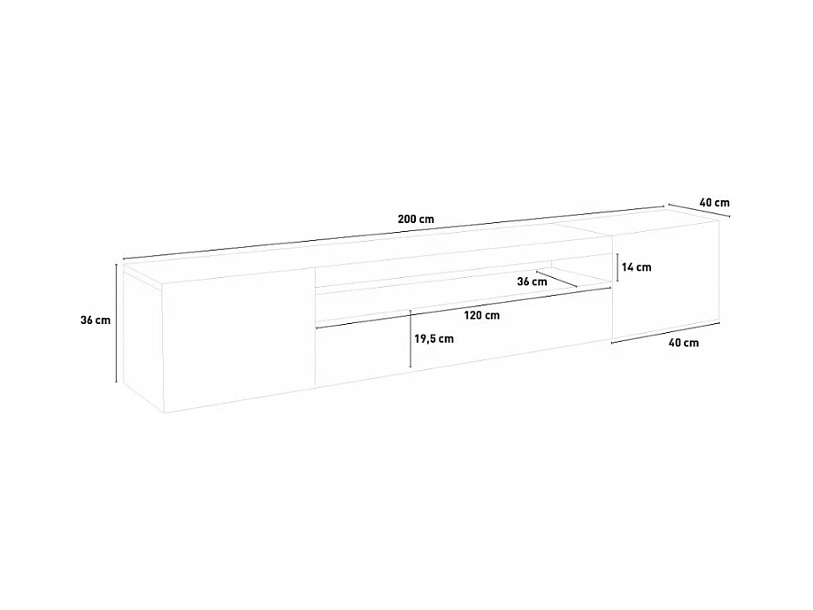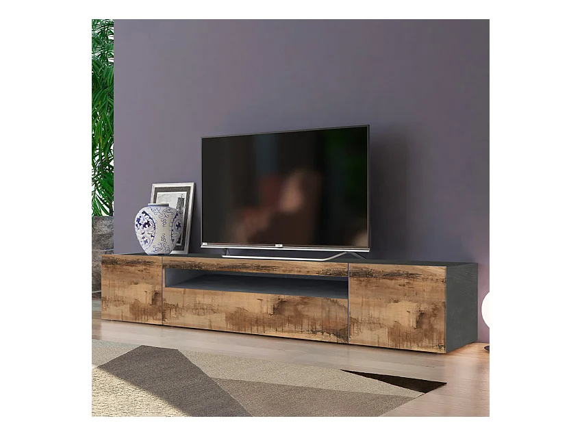 Meuble TV design 200cm 2 portes tiroir armoire rabattable Atlas