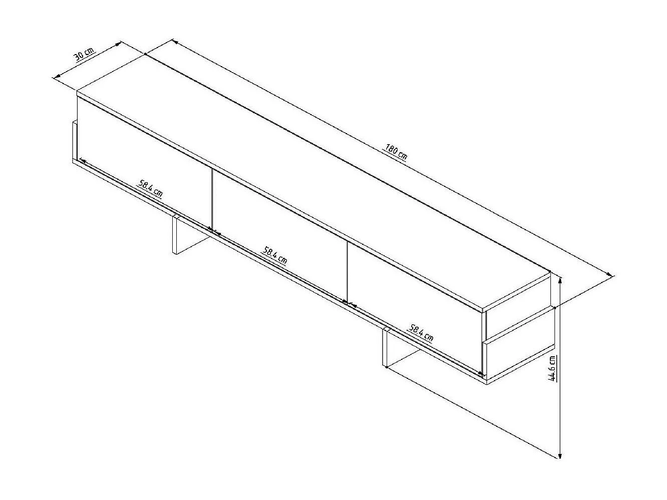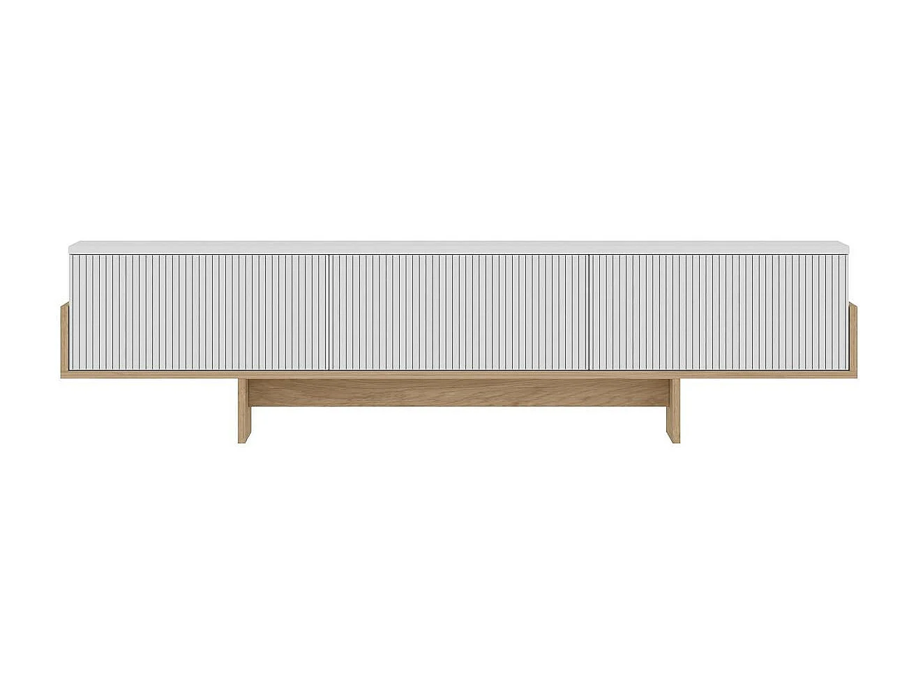 Meuble TV design blanc 3 portes striées et cadre clair MARFA