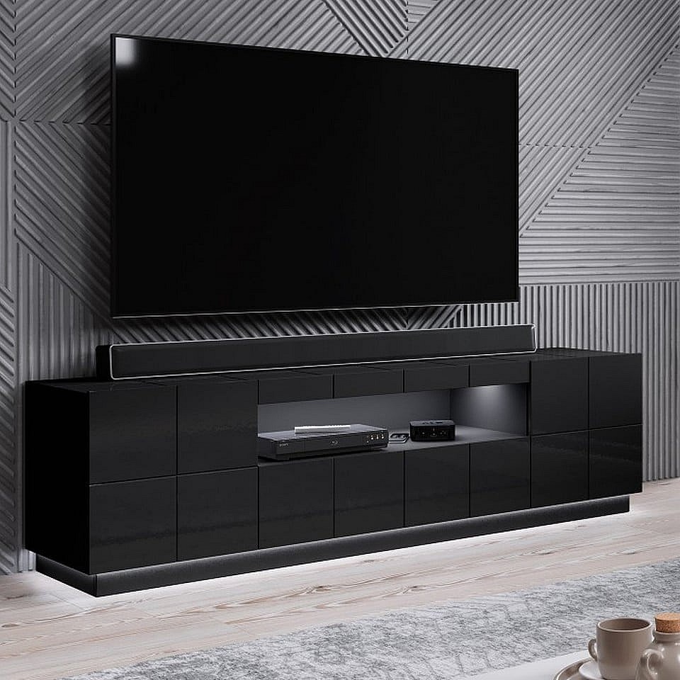 Meuble TV design noir brillant + LED 184 cm Flow - bleu