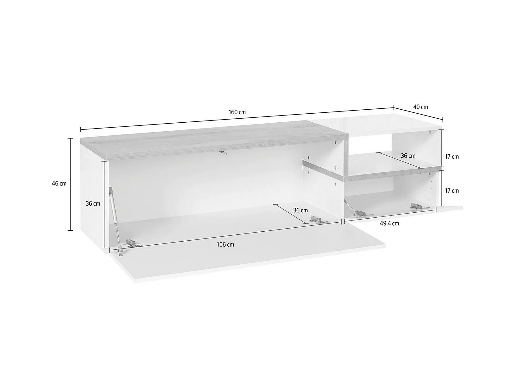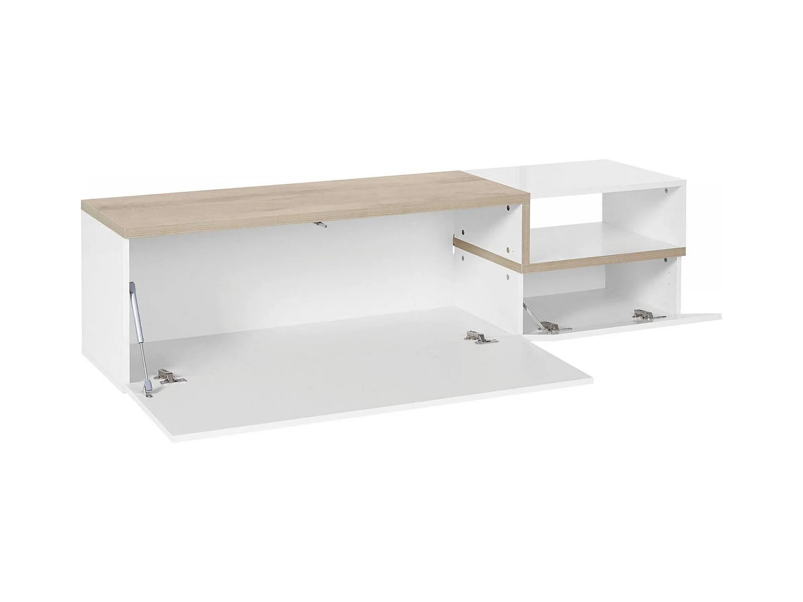 Meuble TV Dgal, Buffet bas de salon avec 2 portes, Base pour meuble TV, 100% Made in Italy, 160x40h46 cm, Blanc brillant et érable
