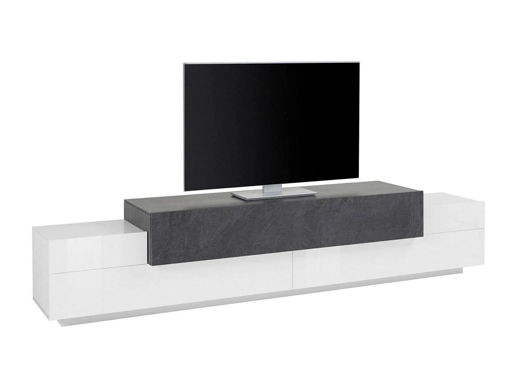 Meuble TV Dlamann, Buffet bas de salon, Base pour meuble TV, 100% Made in Italy, 240x45h52 cm, Blanc brillant et ardoise