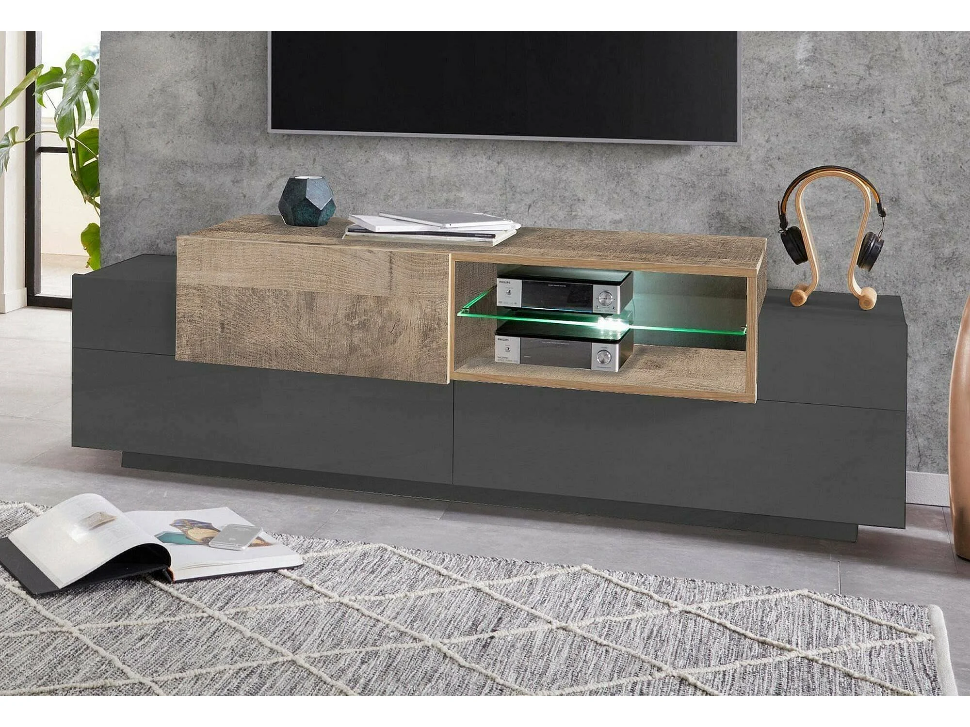 Meuble TV Dlodrin, Buffet bas de salon, Base pour meuble TV, 100% Made in Italy, 160x45h51 cm, Anthracite et Érable