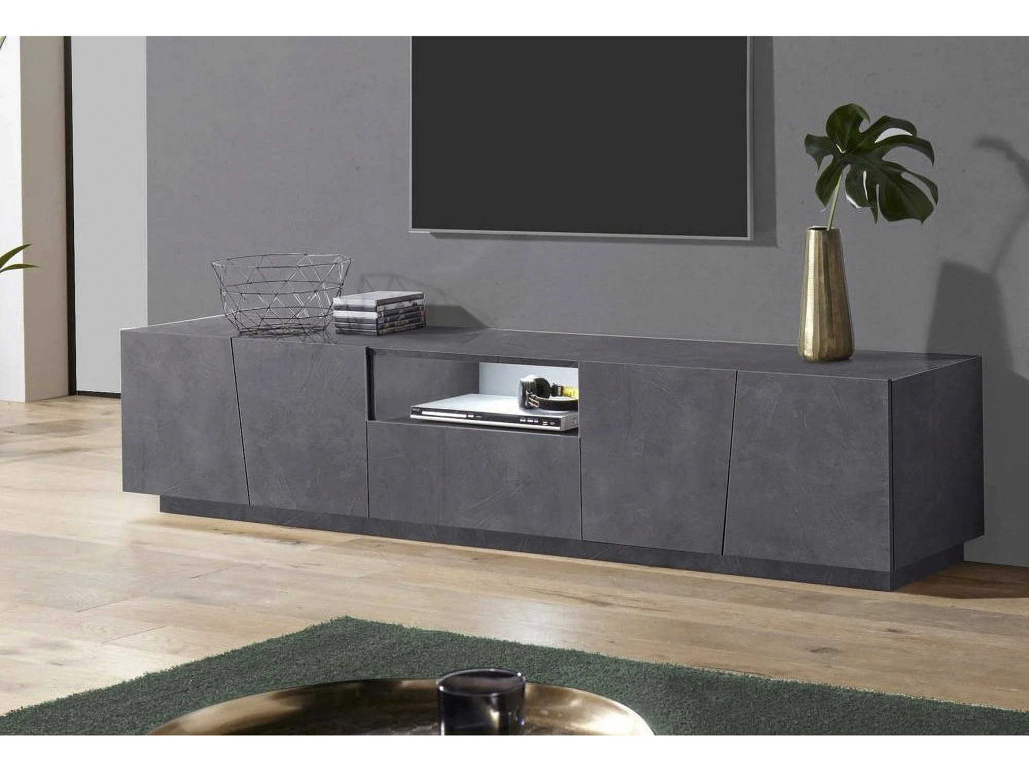 Meuble TV Dlori, Buffet bas de salon, Base pour meuble TV, 100% Made in Italy, 220x43h46 cm, Ardoise