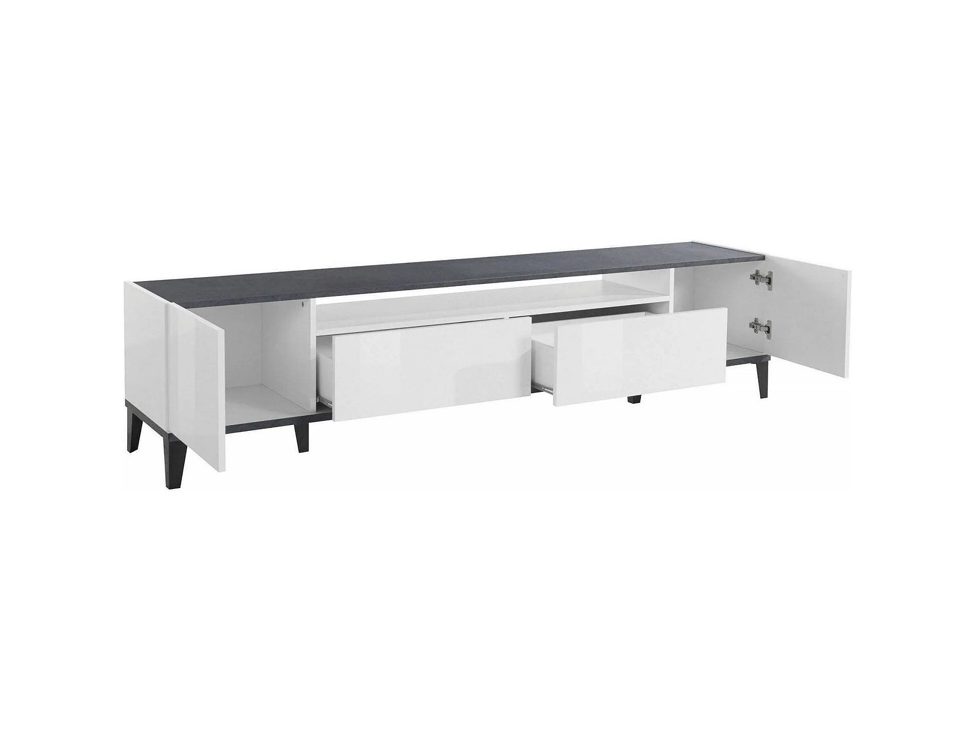 Meuble TV Dmaigna, Buffet bas de salon avec 2 portes, Base pour meuble TV, 100% Made in Italy, 200x40h47 cm, Blanc brillant et ardoise