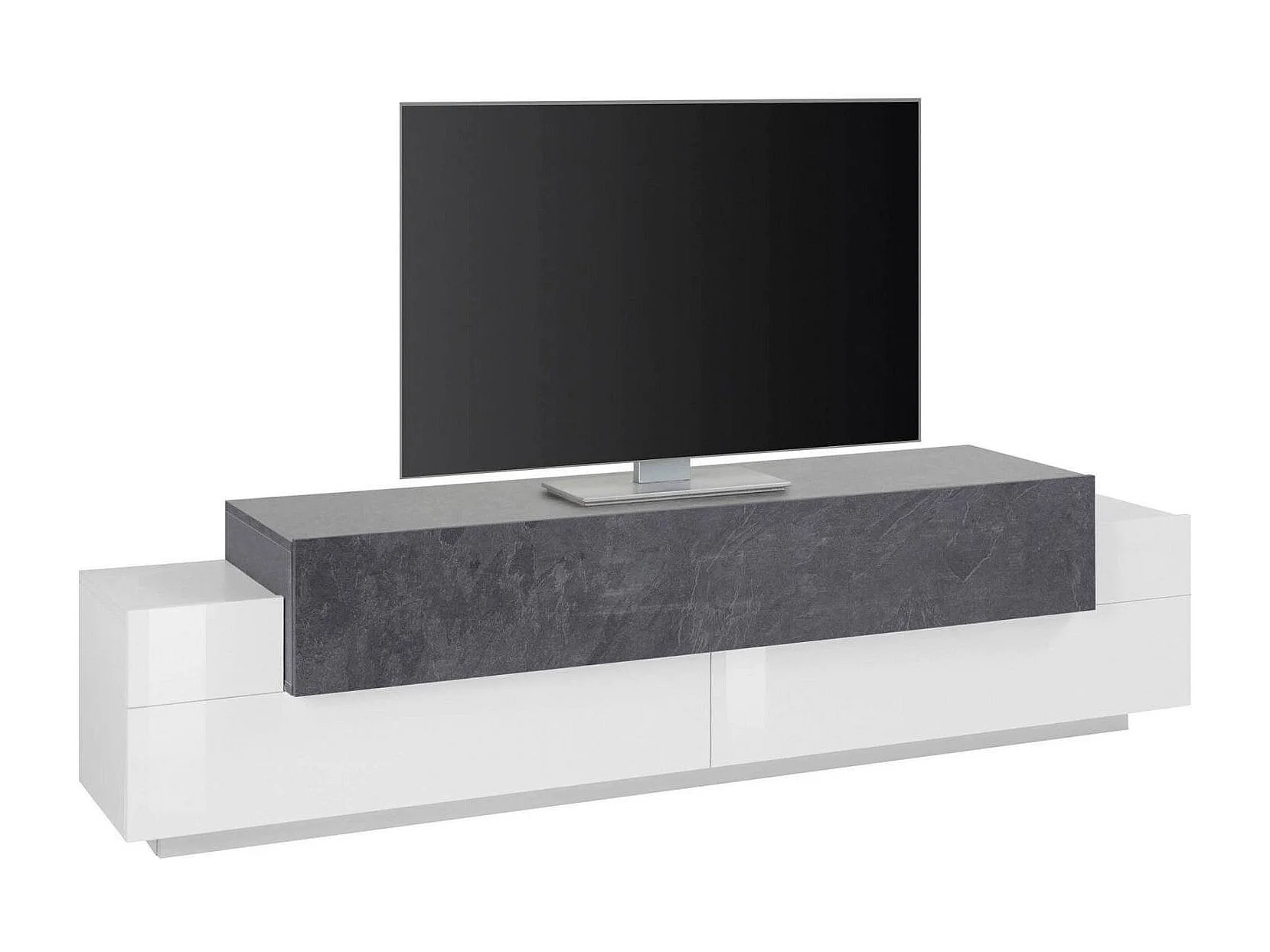 Meuble TV Dmirand, Buffet bas de salon, Base pour meuble TV, 100% Made in Italy, 200x45h52 cm, Blanc brillant et ardoise