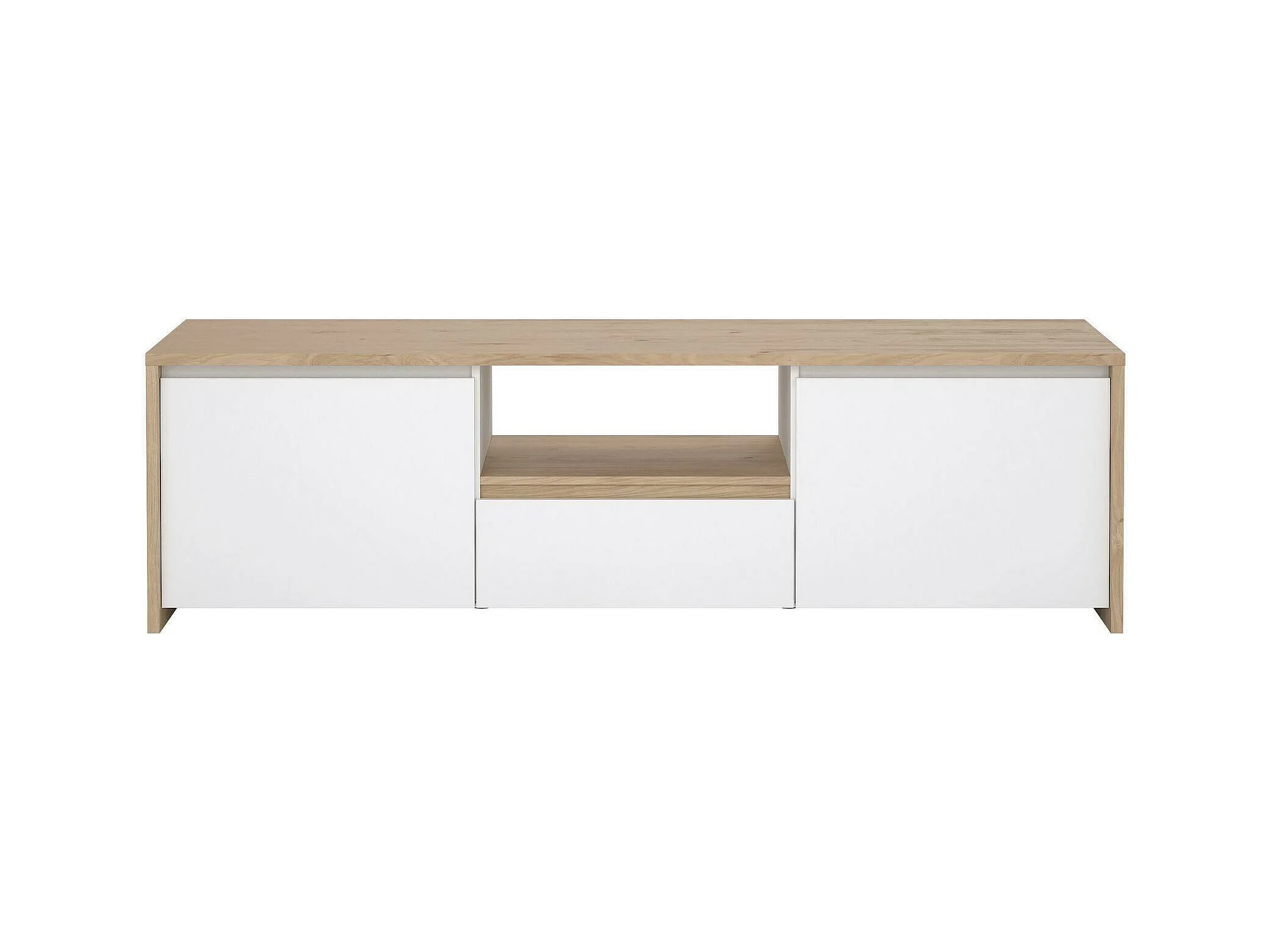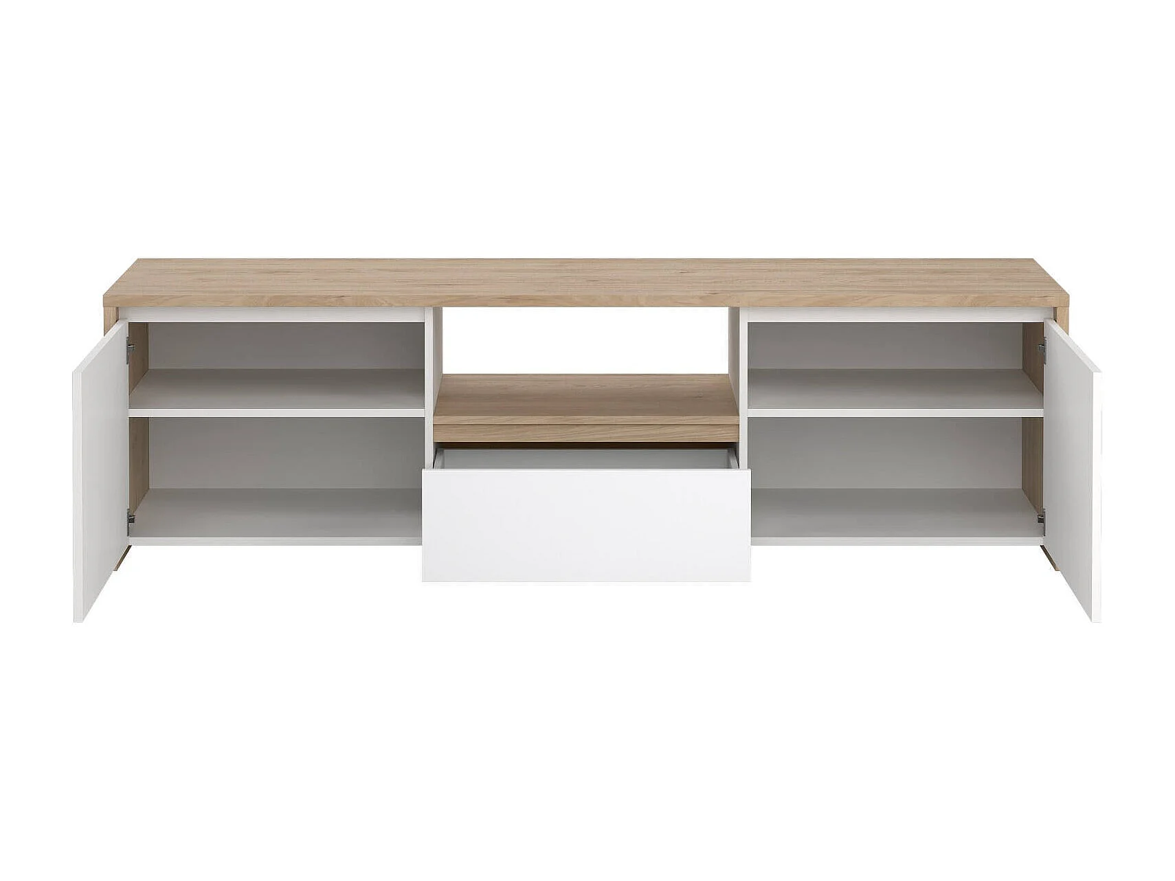 Meuble TV Dtessior, Buffet de salon, Armoire basse pour TV, Base murale de rangement, 179x48 h52 cm, Chêne clair et Blanc