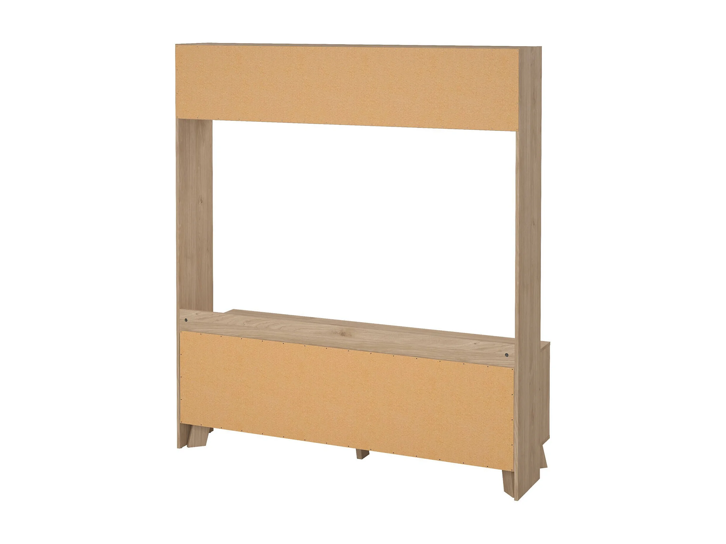 Meuble TV Dteston, Buffet de salon, Armoire basse pour TV, Base murale de rangement, 159x48 h181 cm, Chêne clair et Blanc