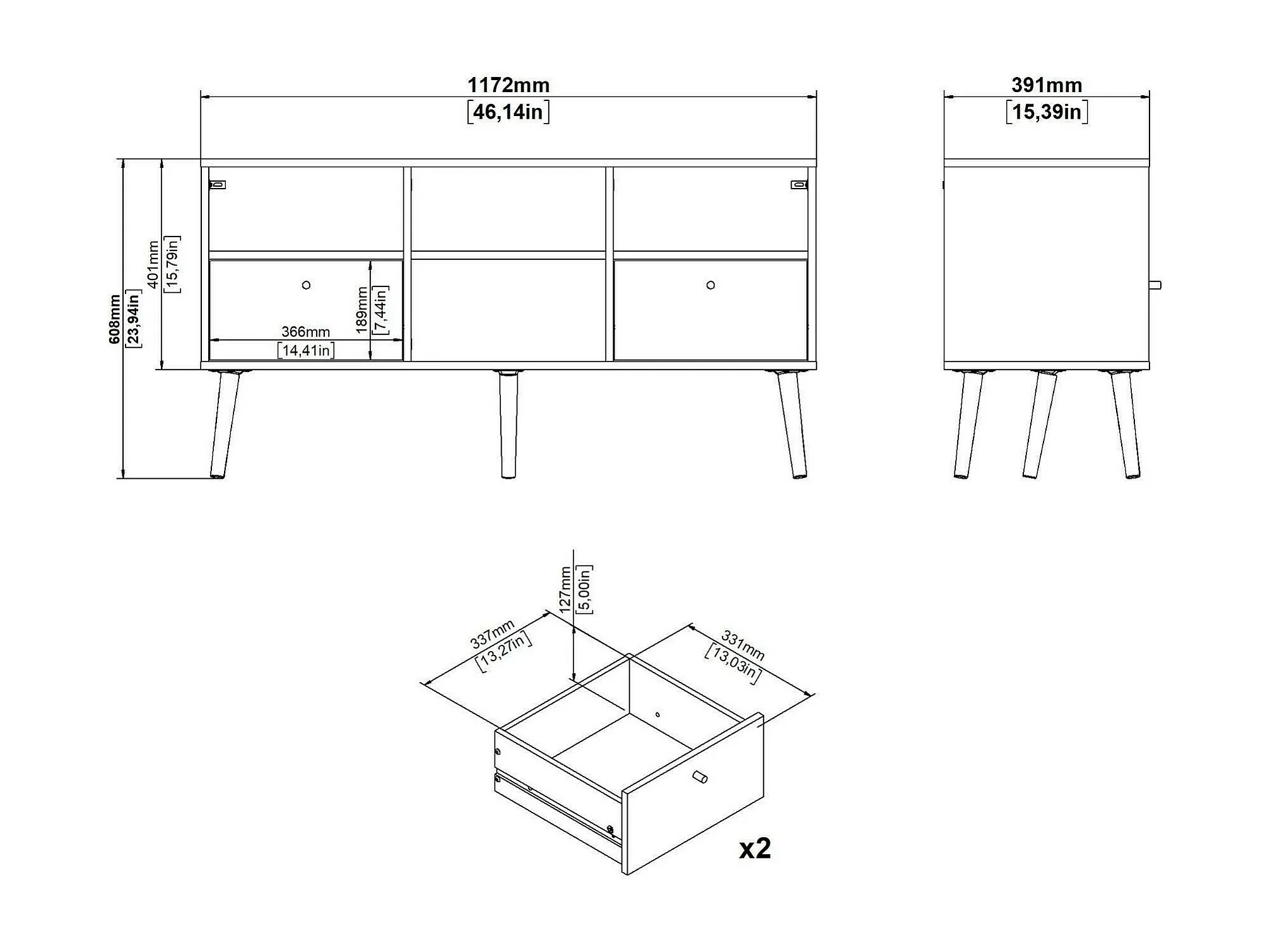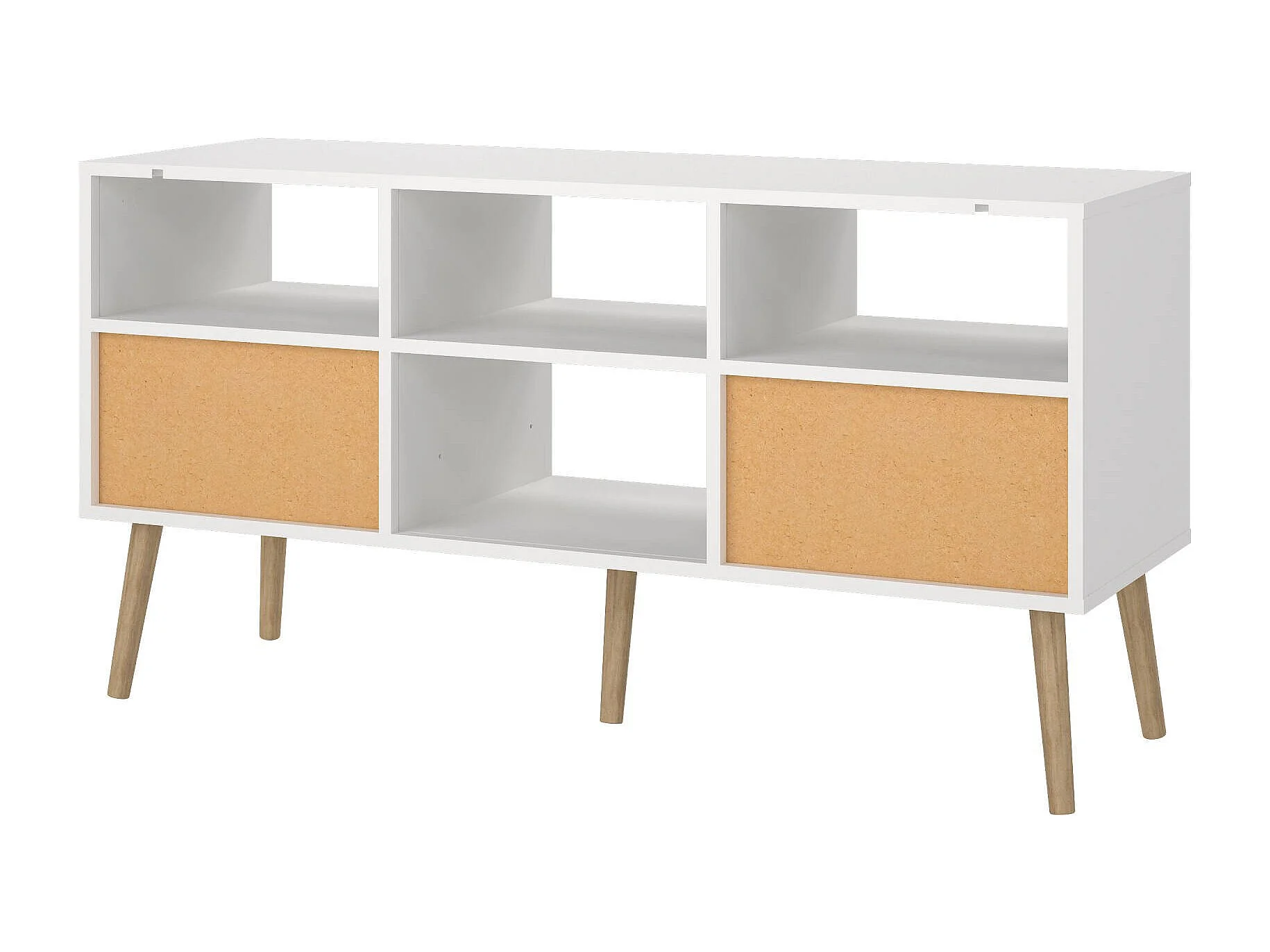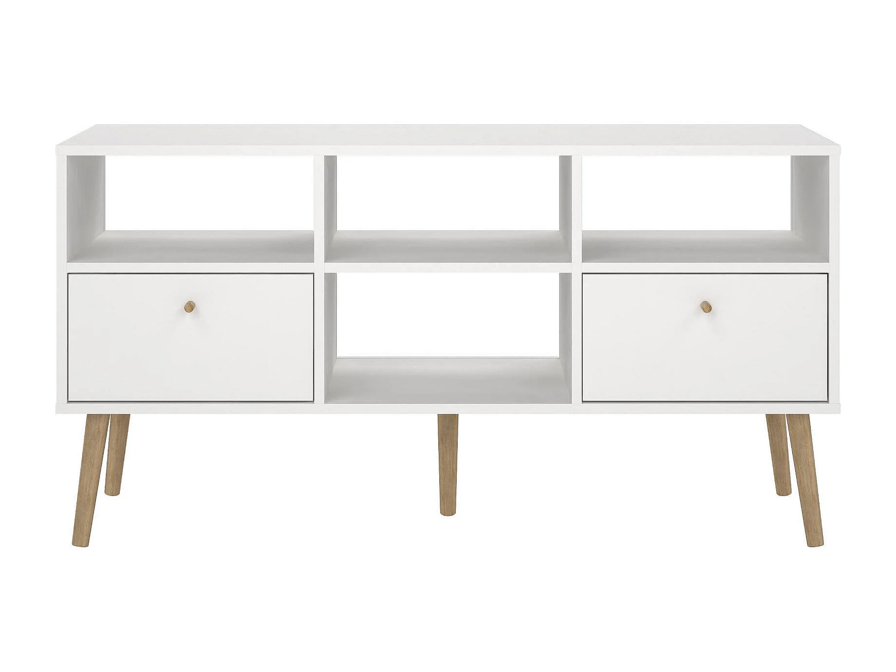 Meuble TV Dtoedtl, Buffet de salon, Armoire basse pour TV, Base murale de rangement, 117x39 h61 cm, Blanc