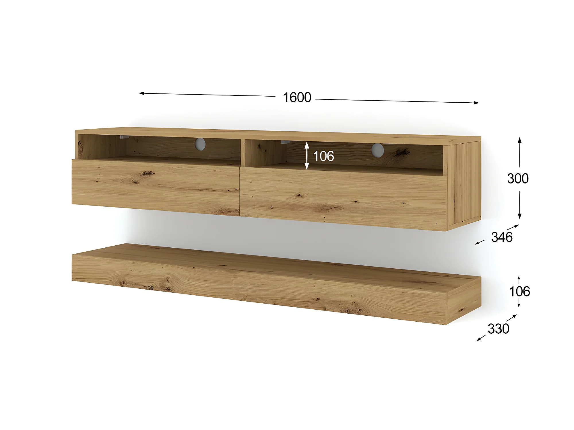 Meuble TV DUO 160 cm suspendu Artisan sideboeard avec étagère