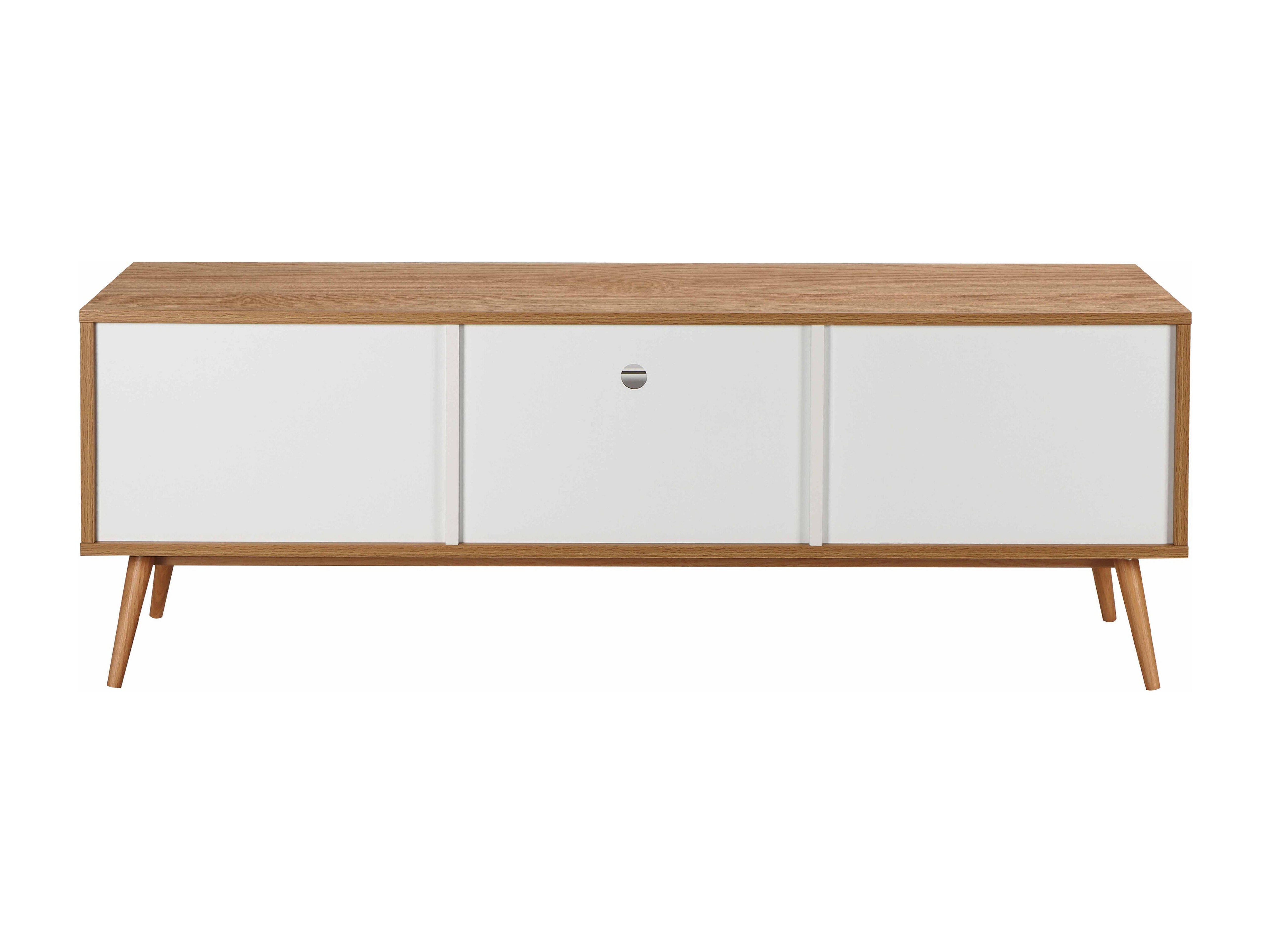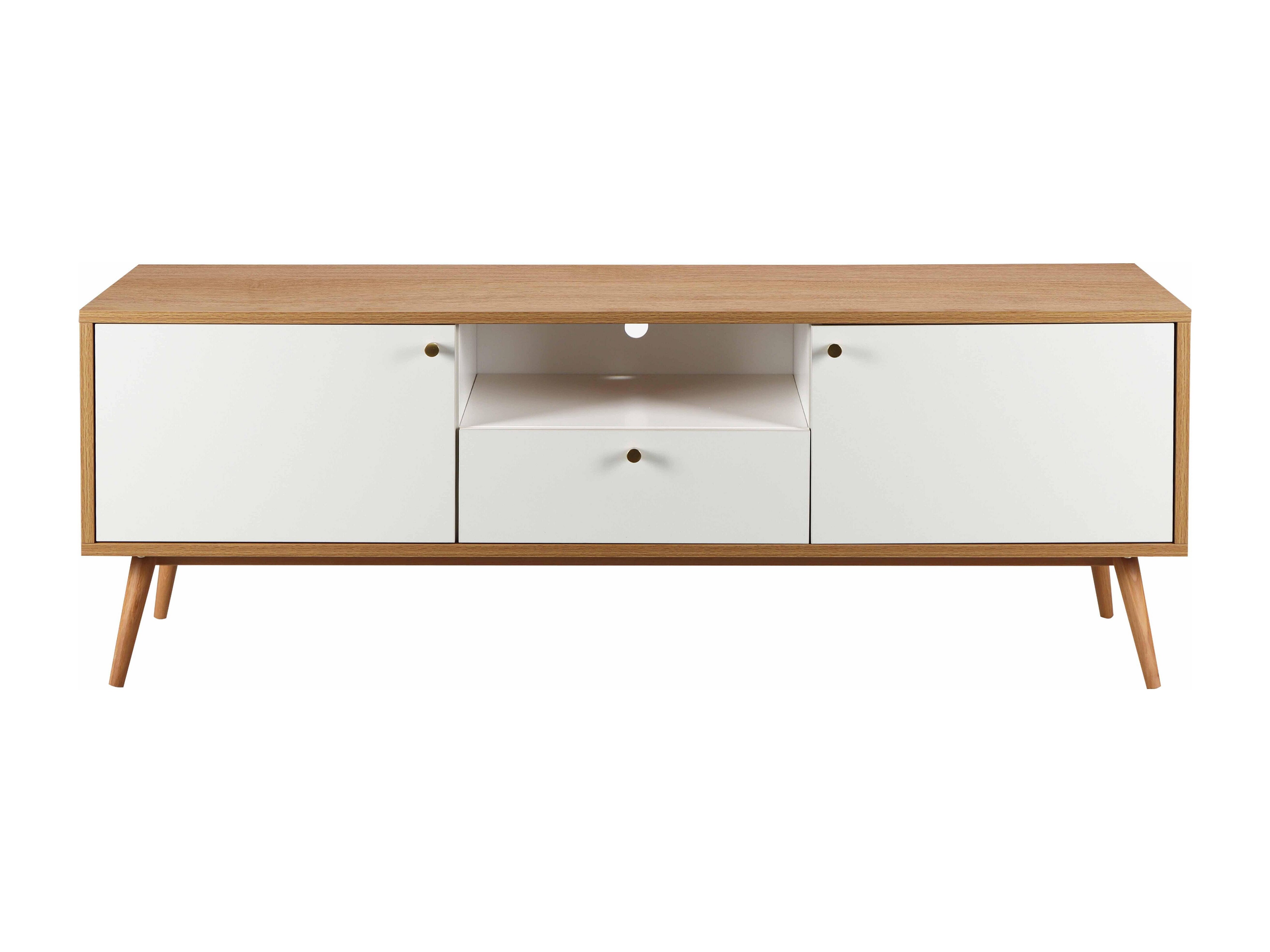 Meuble TV effet bois clair et blanc 150 cm scandinave