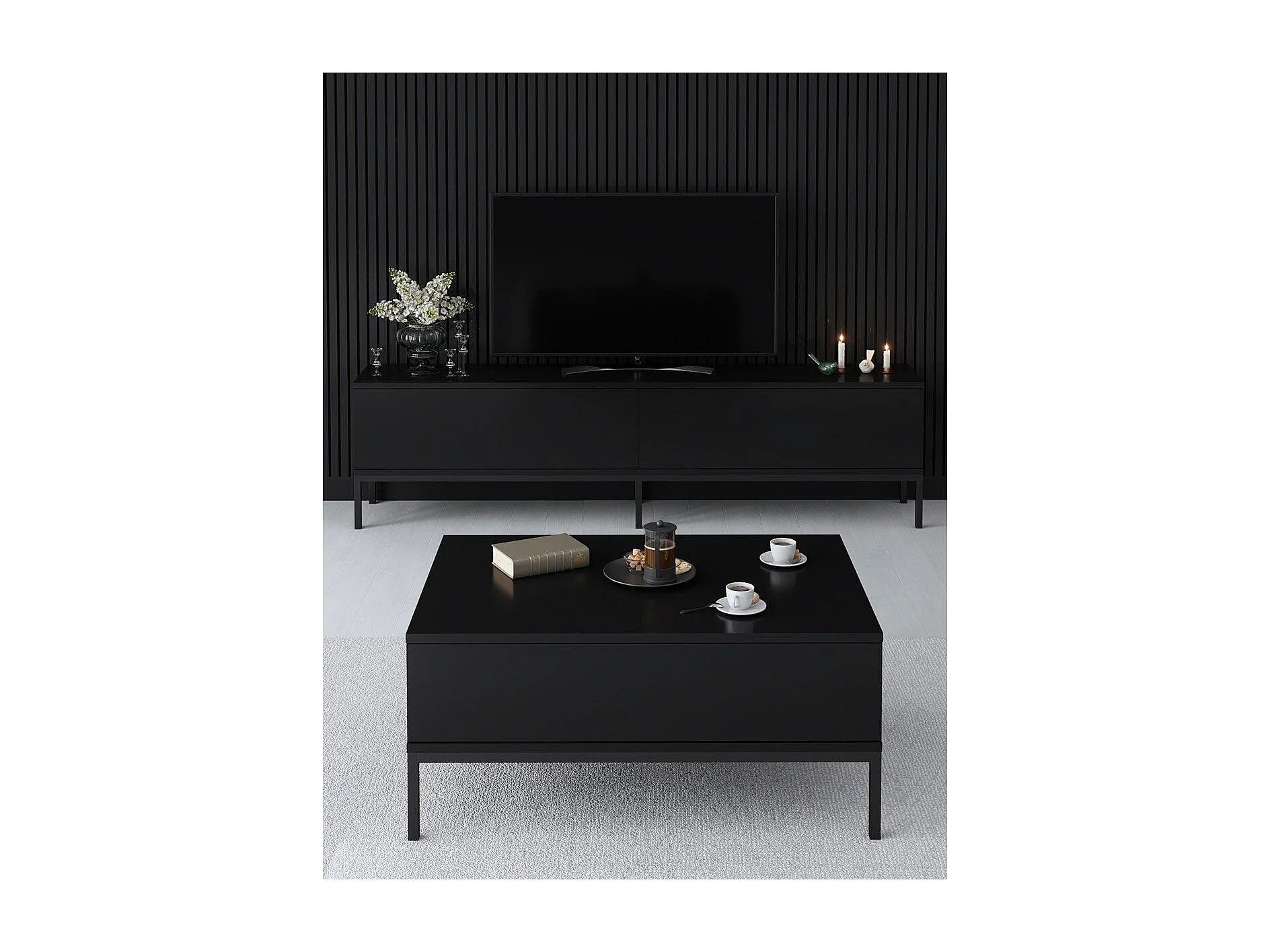 Meuble TV 2 portes rabattables noir L180 cm - LORD