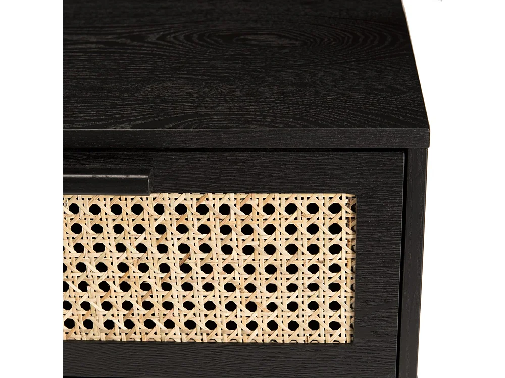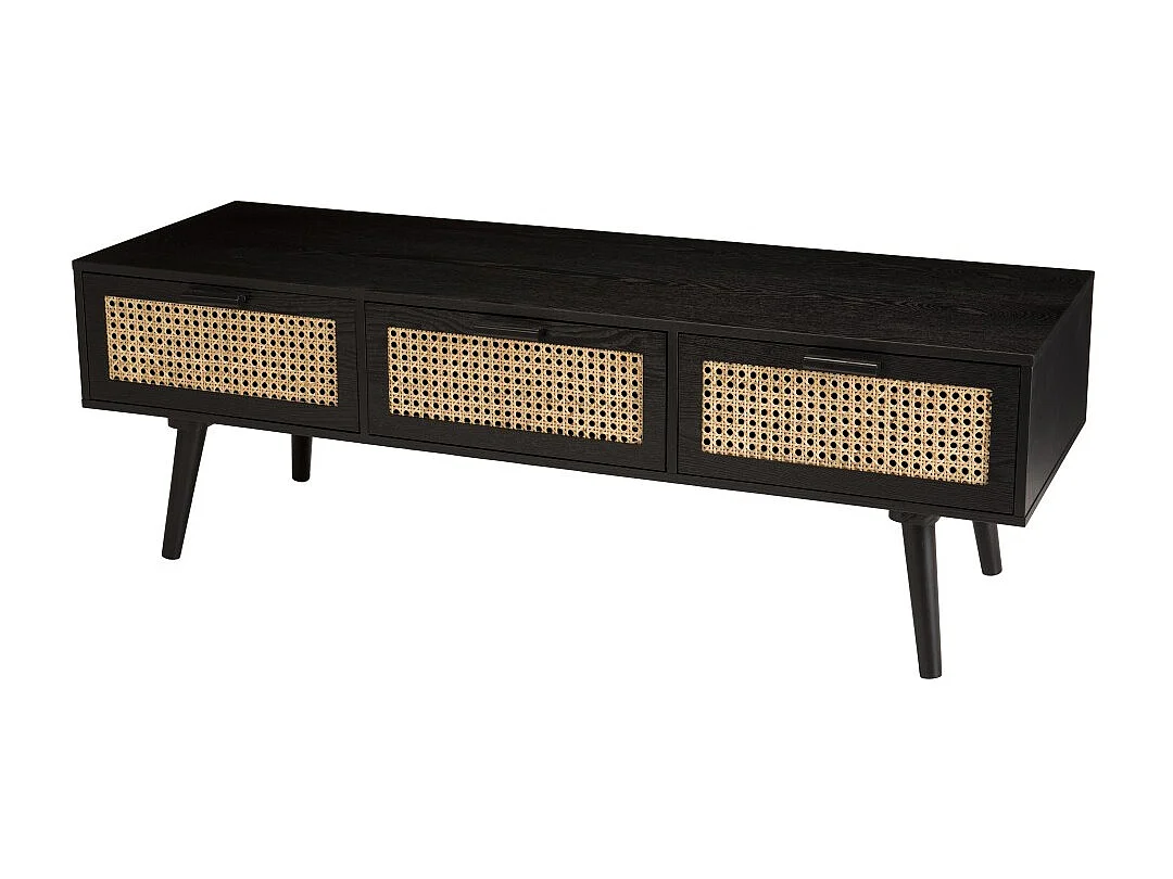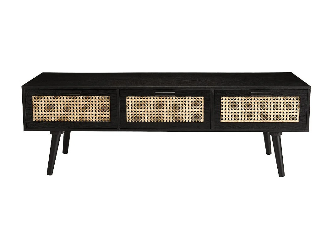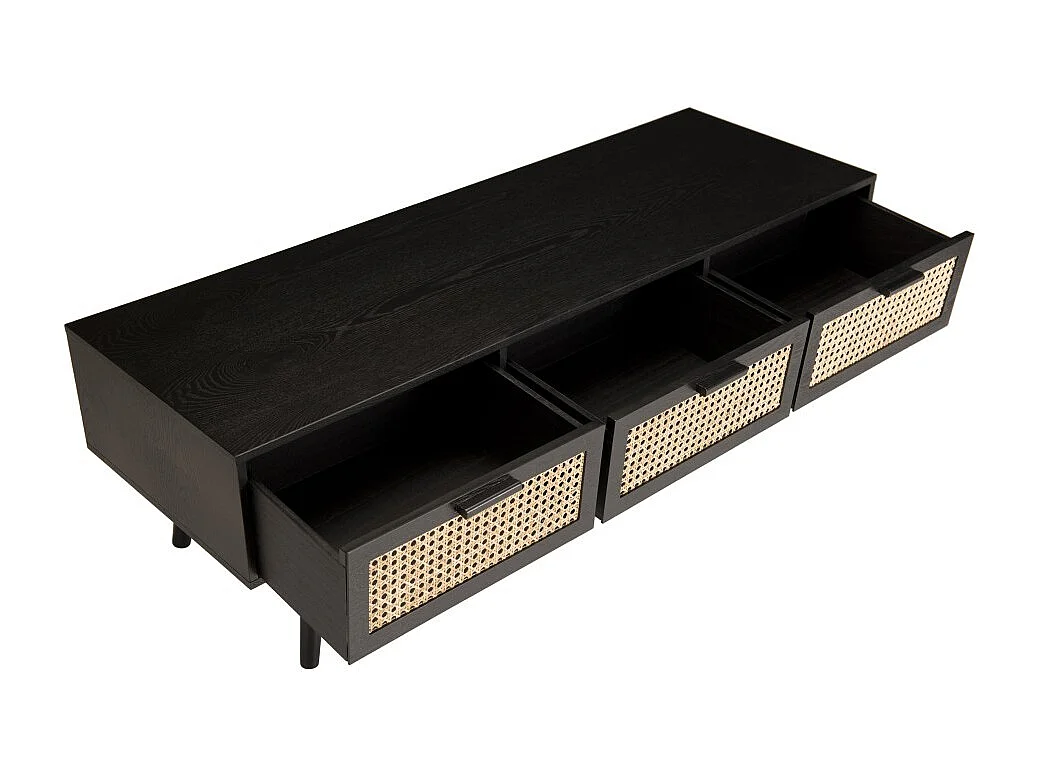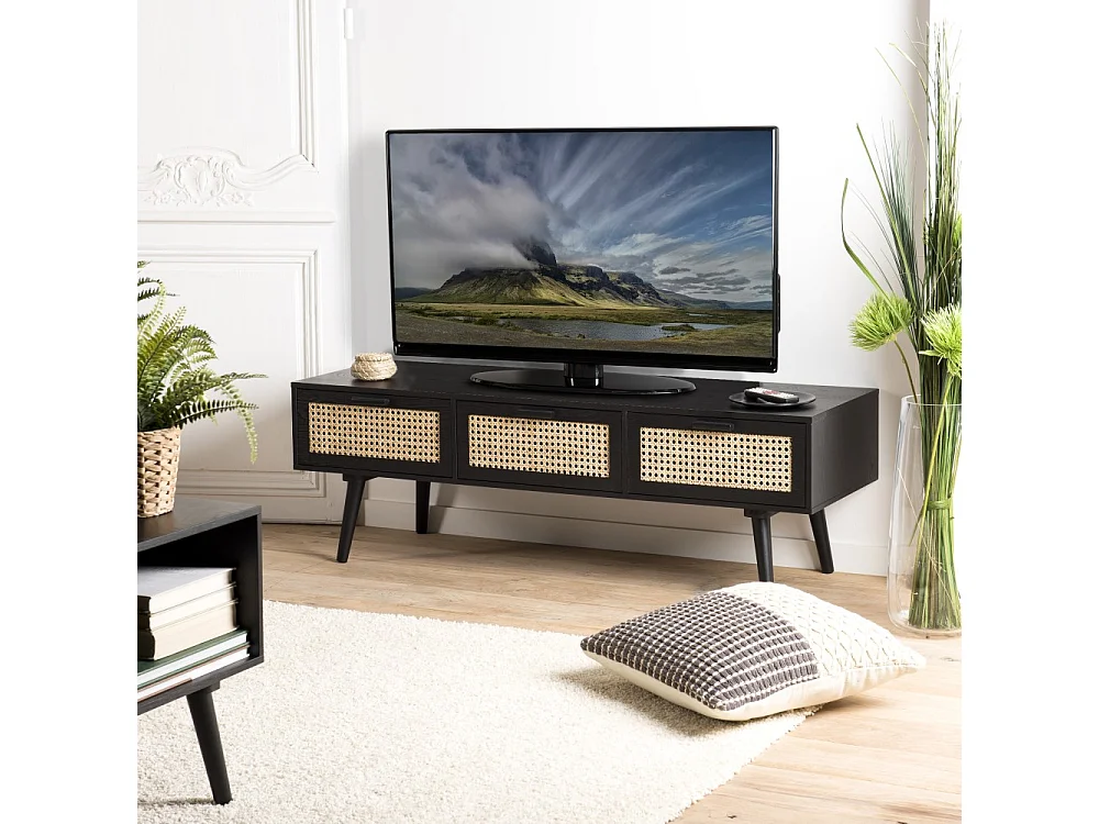 ANGELO - Meuble TV bois noir 3 tiroirs cannage