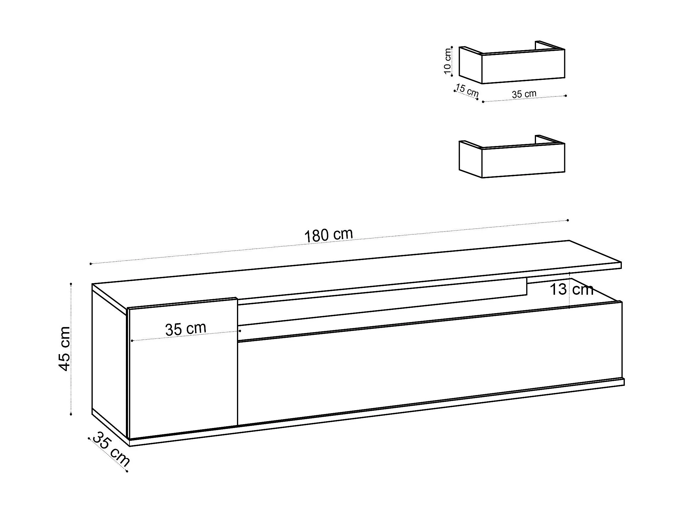 Meuble TV en bois "Alika" - 180 x 35 x 45 cm - Chêne