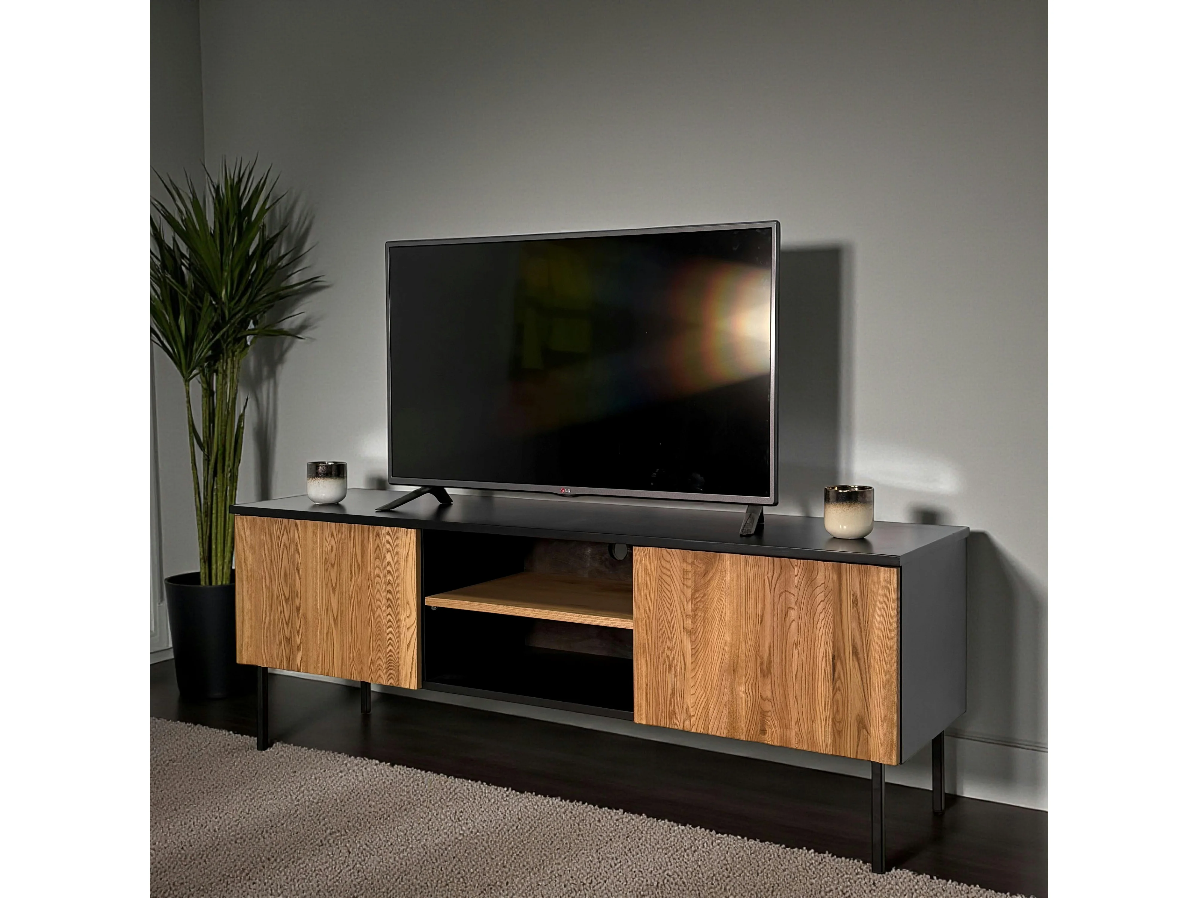 Meuble TV en bois bicolore avec façade ondulée TARAN
