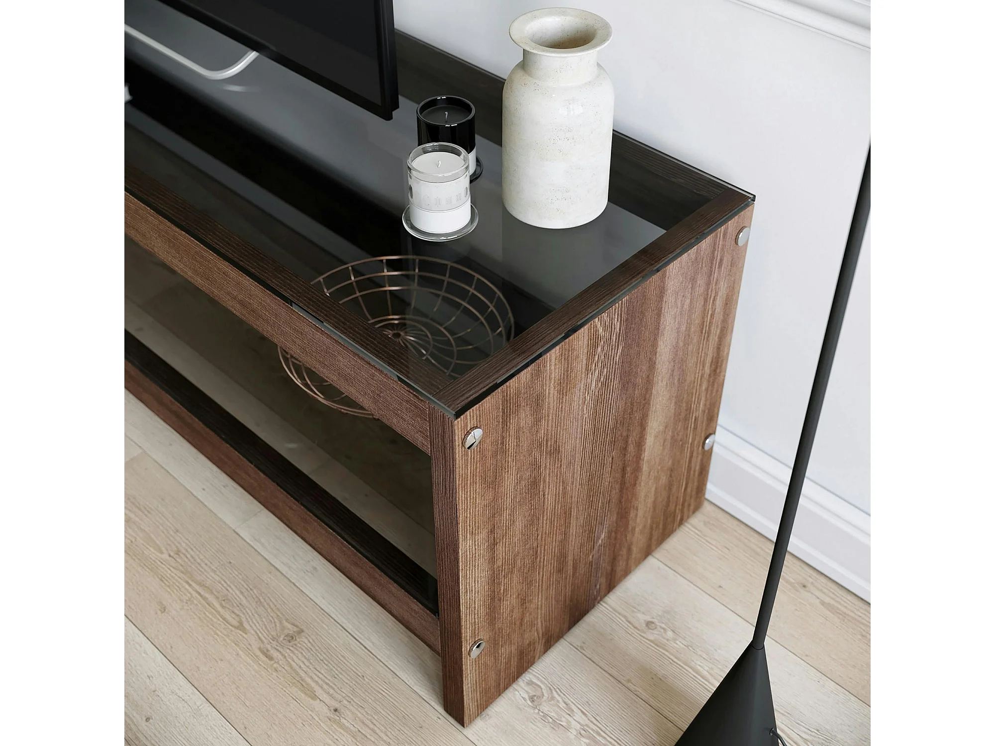 Meuble TV en bois brun et verre fumé - LHASA