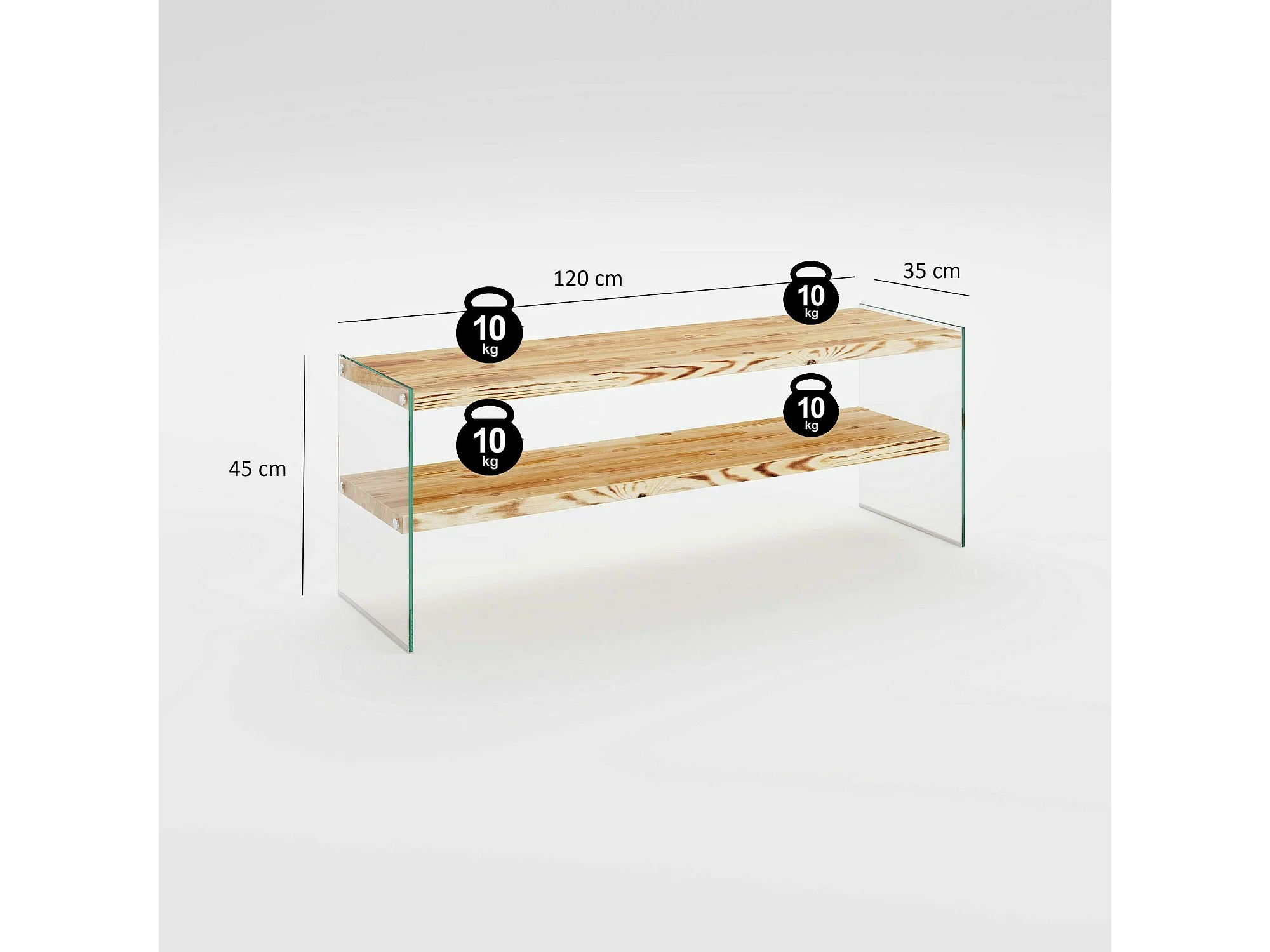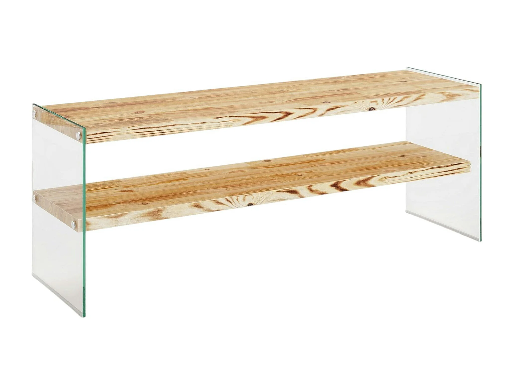 Meuble TV en bois clair et verre - 2 niveaux LHASA