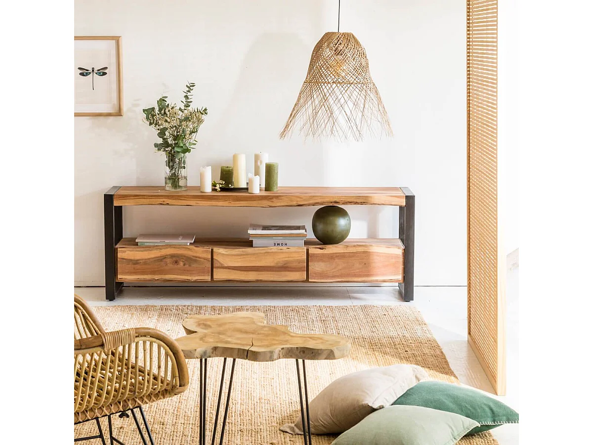 Meuble TV en bois d'acacia 3 tiroirs Tree