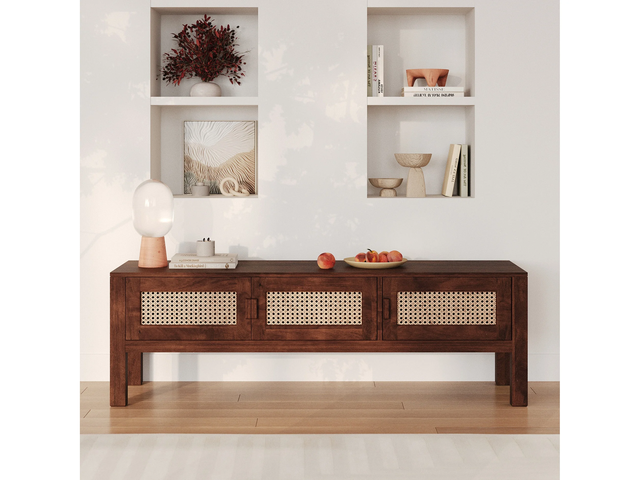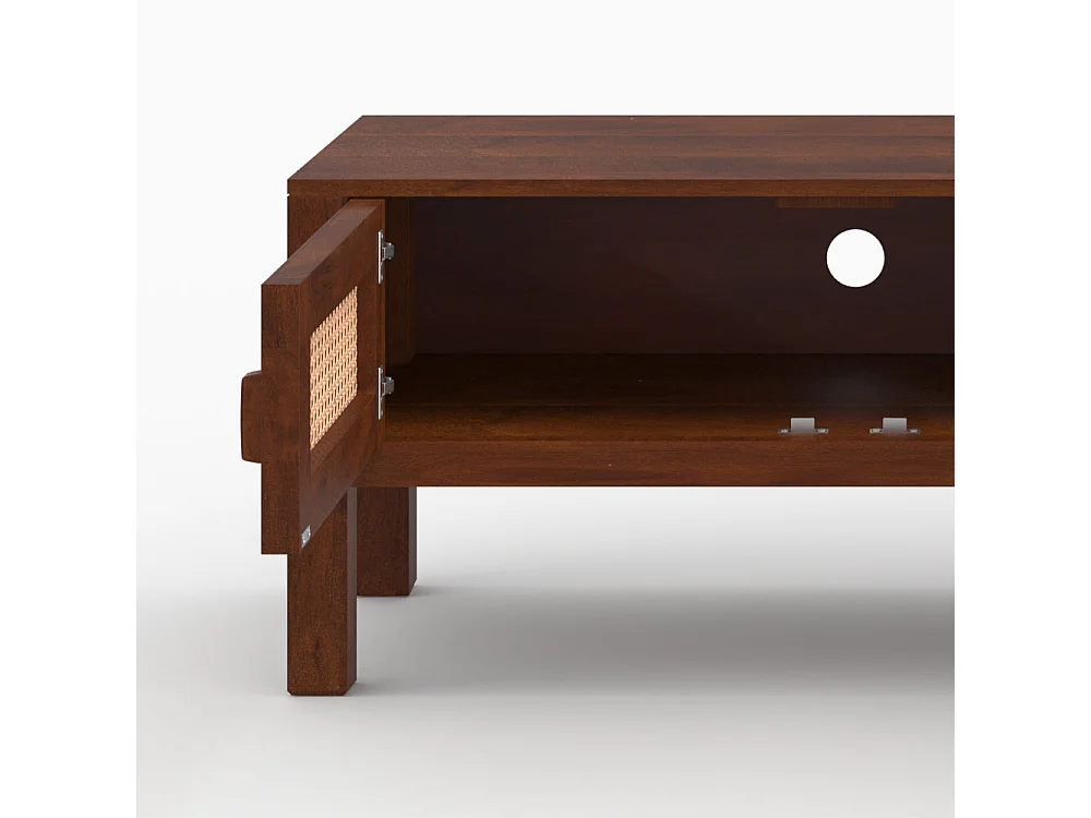 Meuble TV en bois de manguier et cannage - Tiki