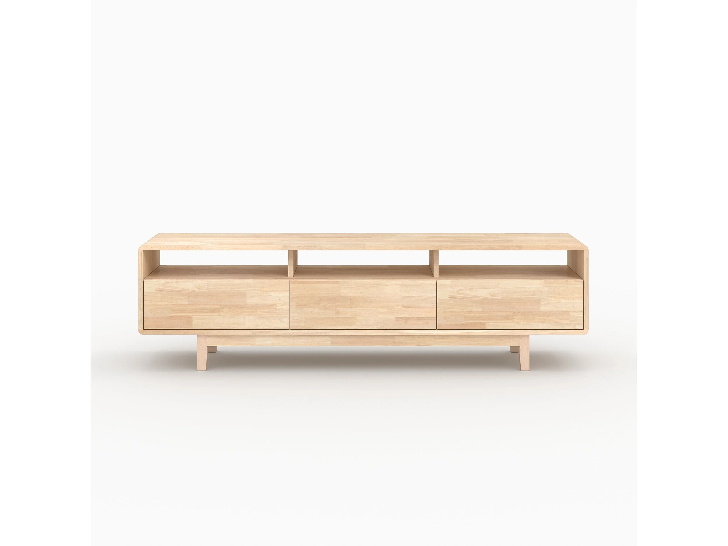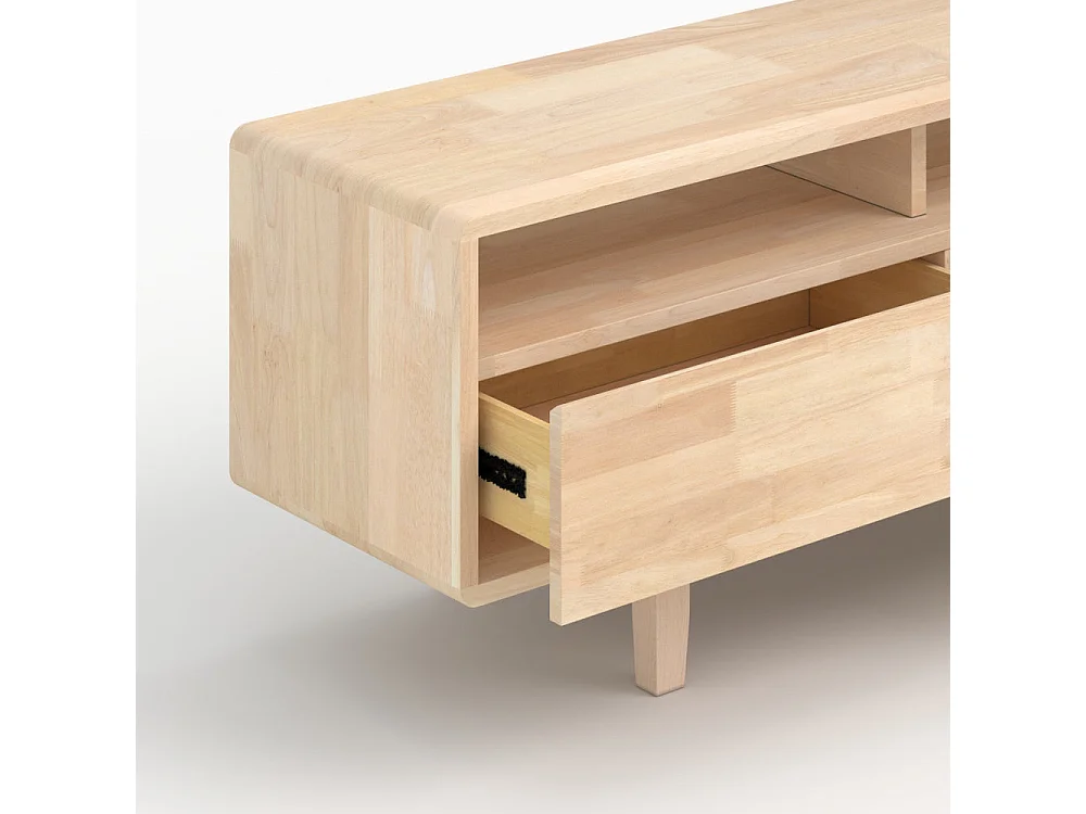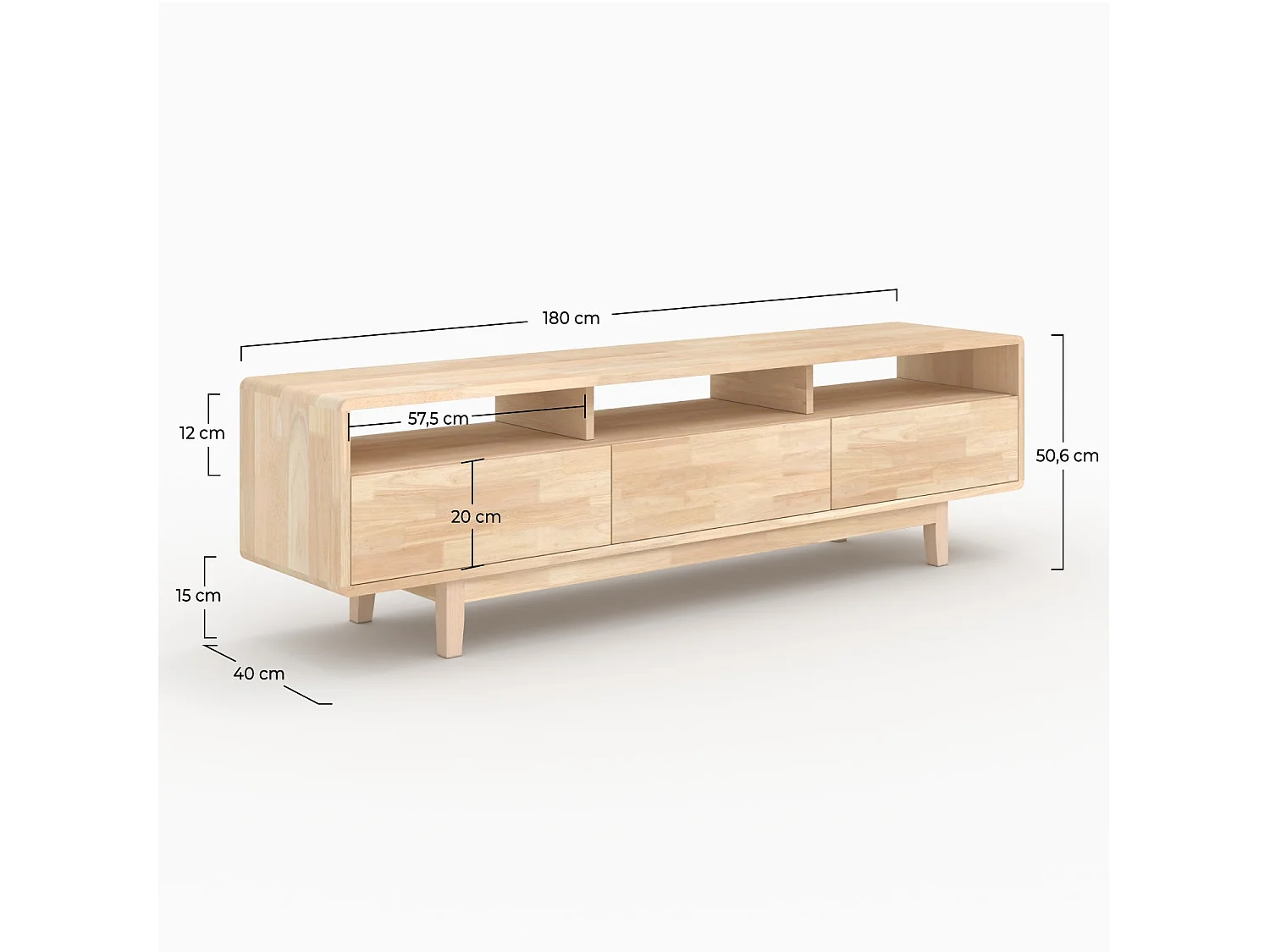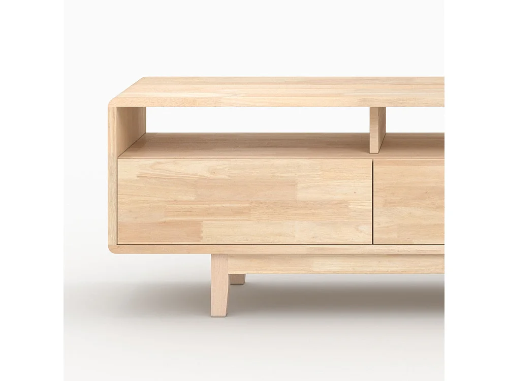 Meuble TV en bois d'hévéa massif effet blanchi - Gisèle