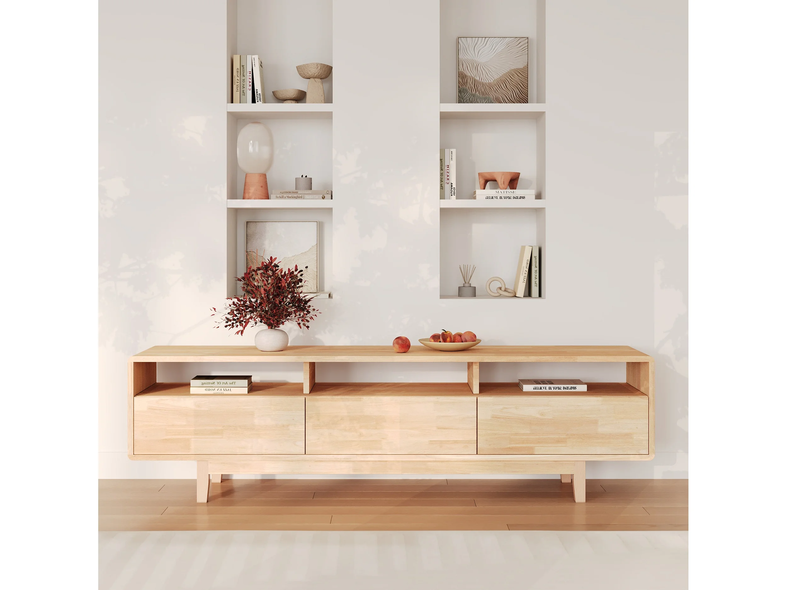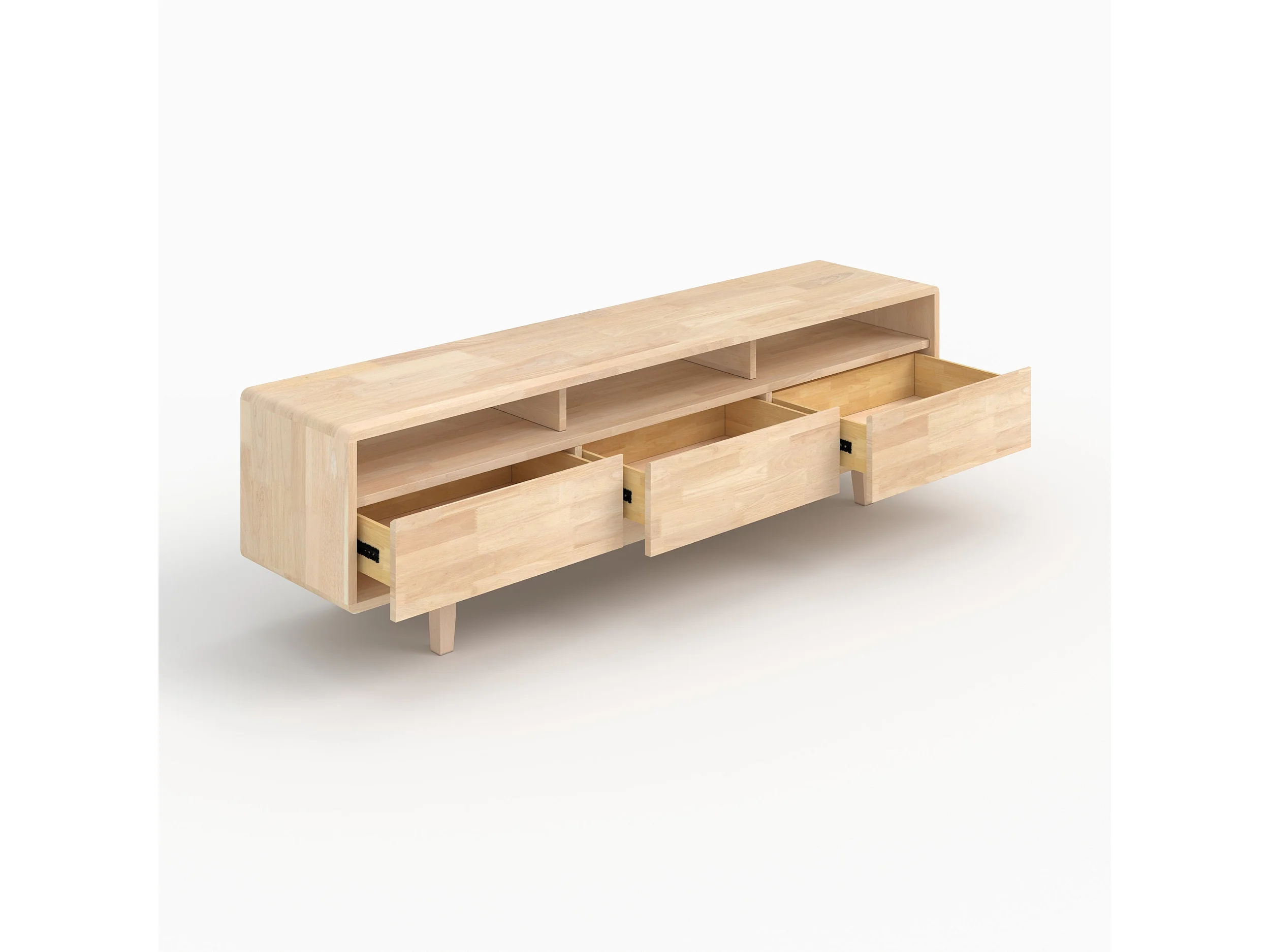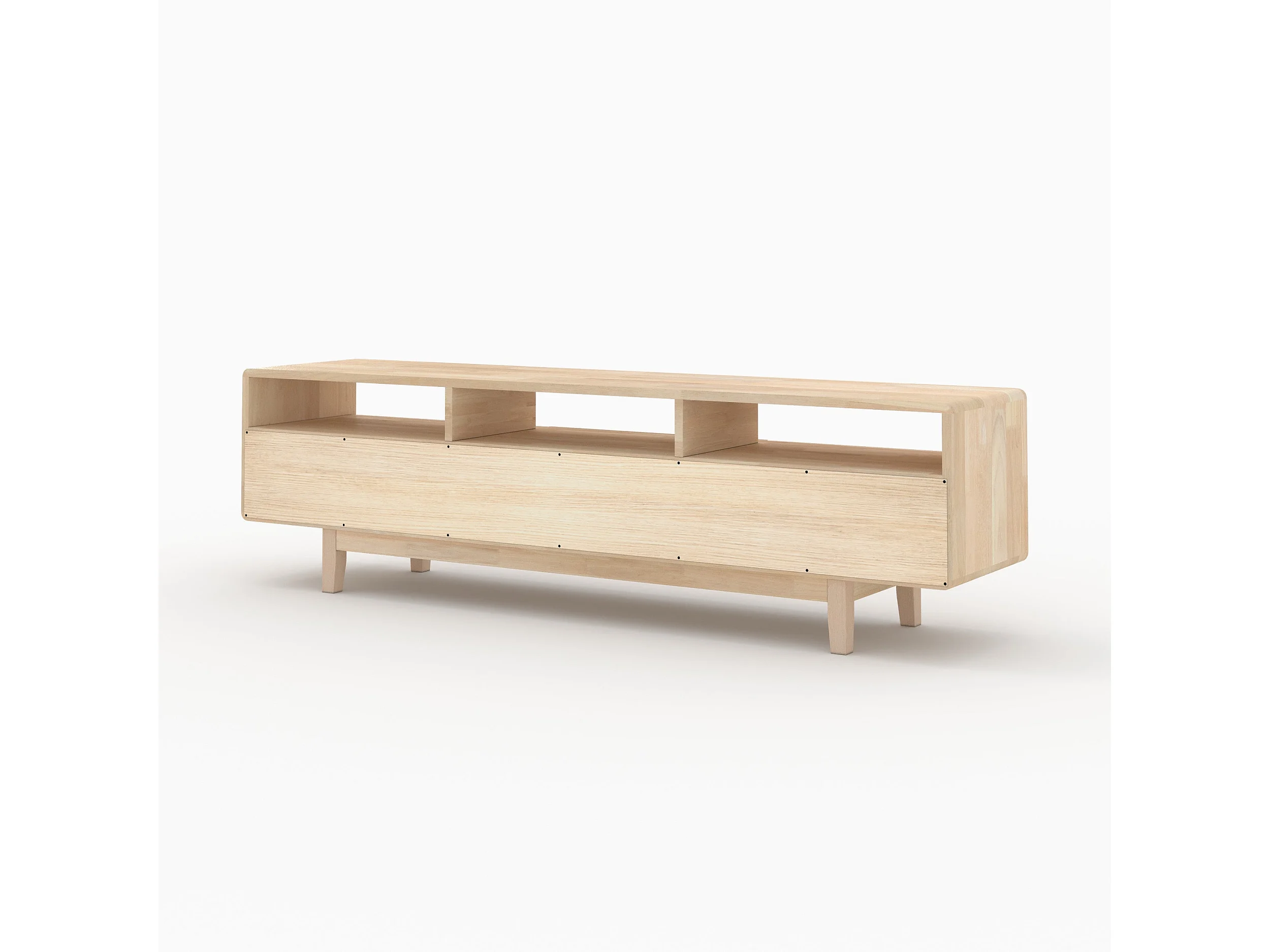 Meuble TV en bois d'hévéa massif effet blanchi - Gisèle