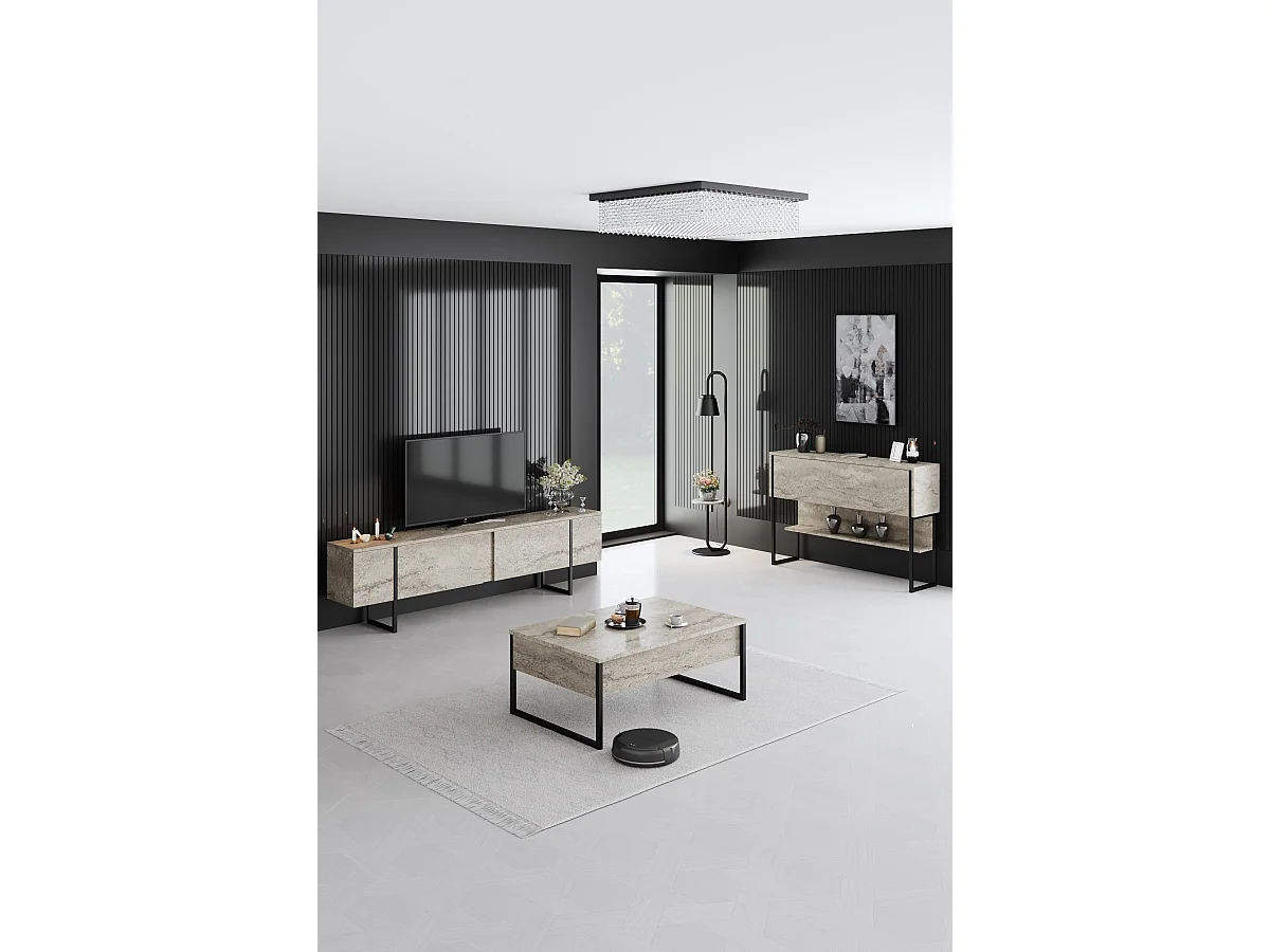 Meuble TV en bois "Luxe" - 180 x 30 x 50 cm - TravertinNoir