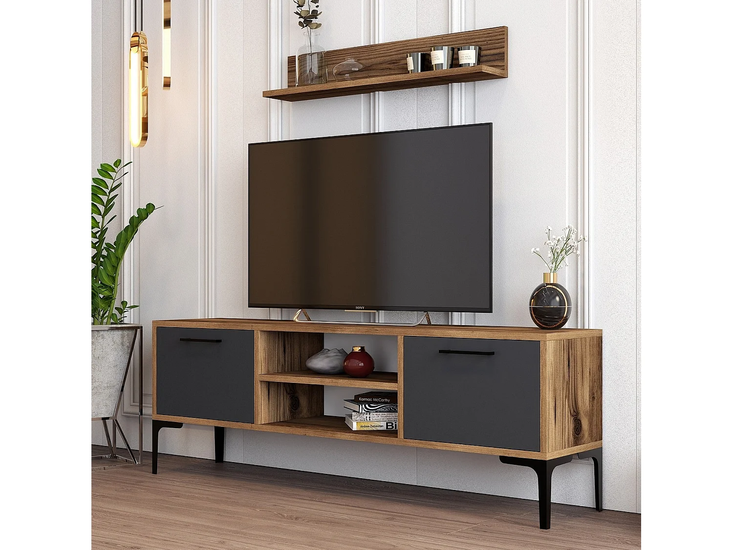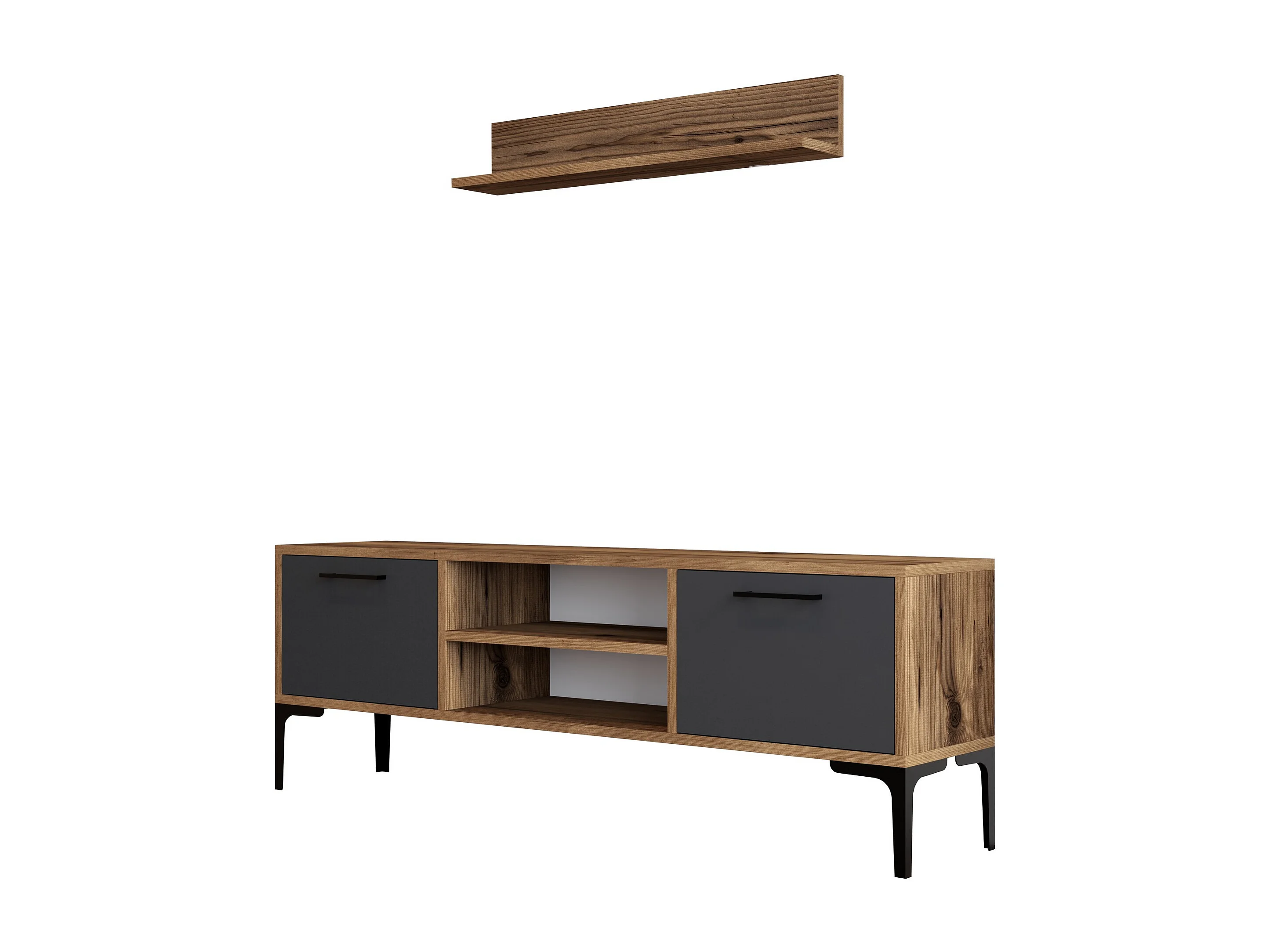 Meuble TV en bois "Riga" - 140 x 30 x 48 cm - NoyerAnthracite