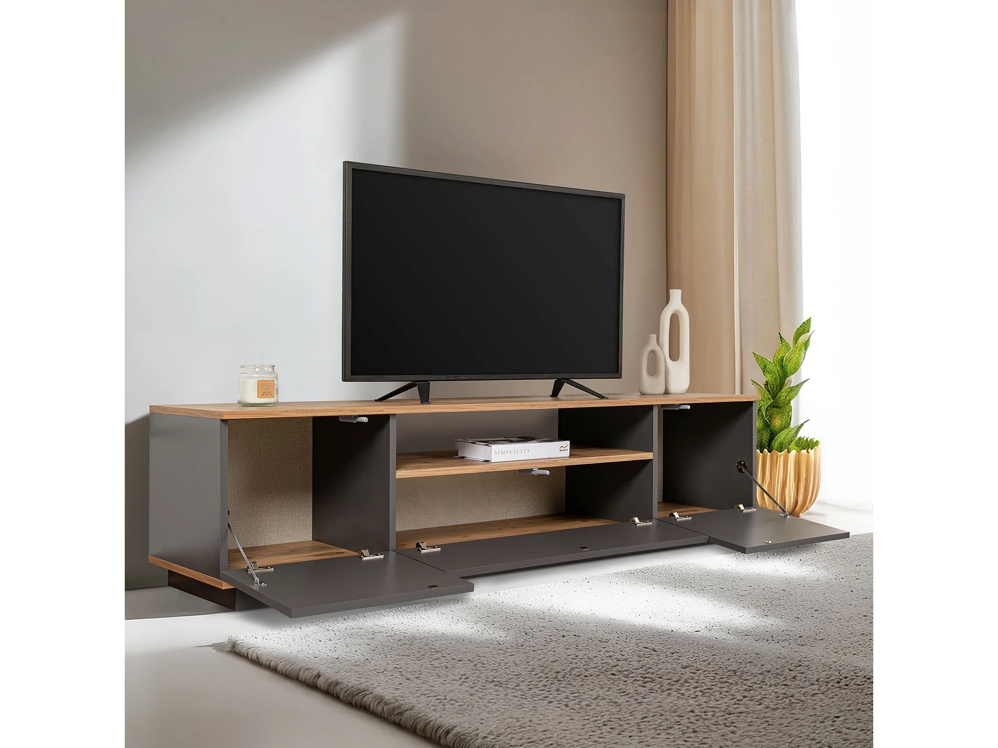 Meuble TV en bois "Veramont" - 180 x 44 x 44 cm - Gris anthracite