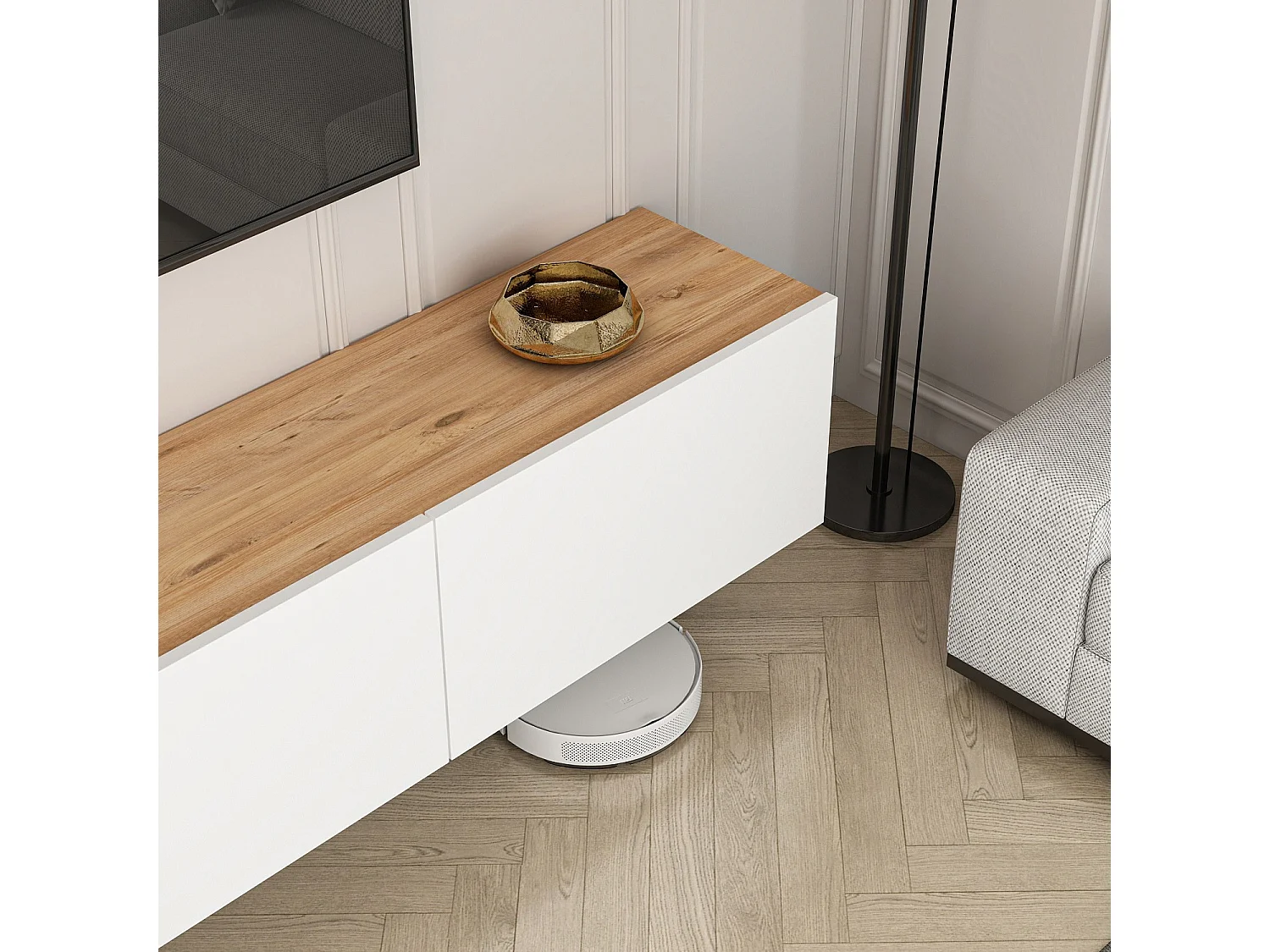 Meuble TV suspendu FLY – Design moderne – Blanc brillant – Système Push to Open
