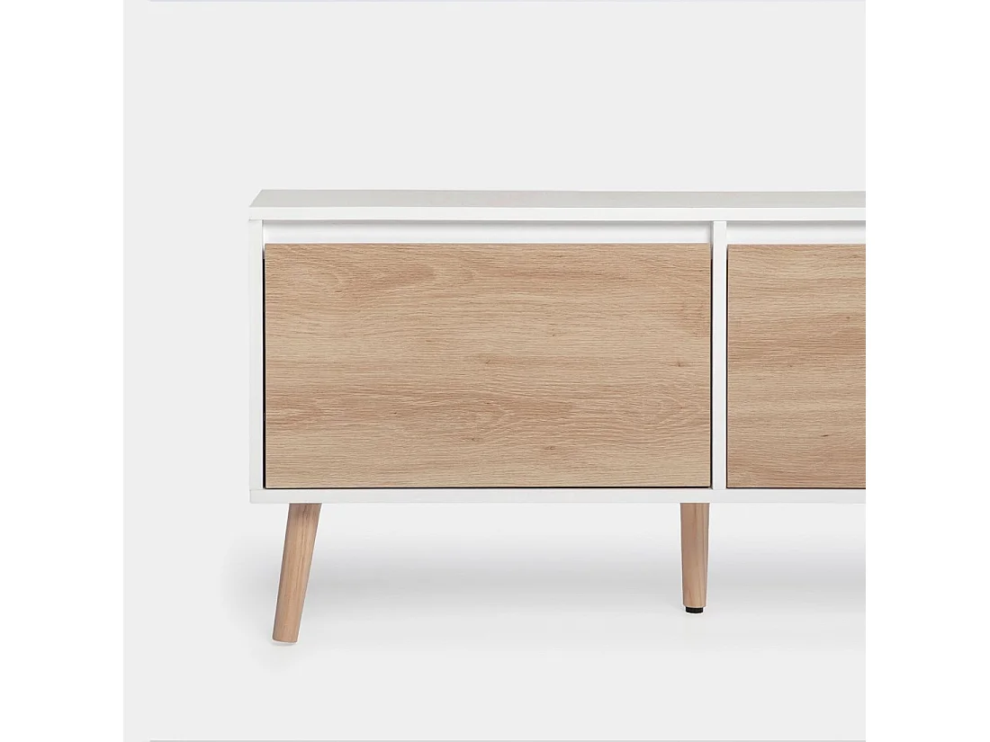 Meuble TV en laqué blanco-natural 160x51 cm-Kemi