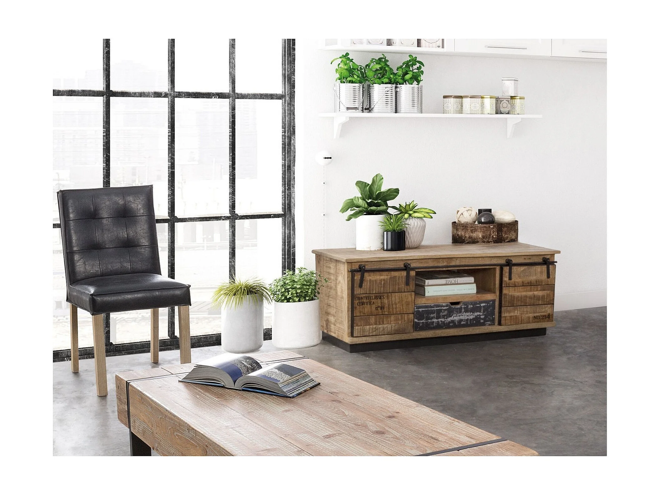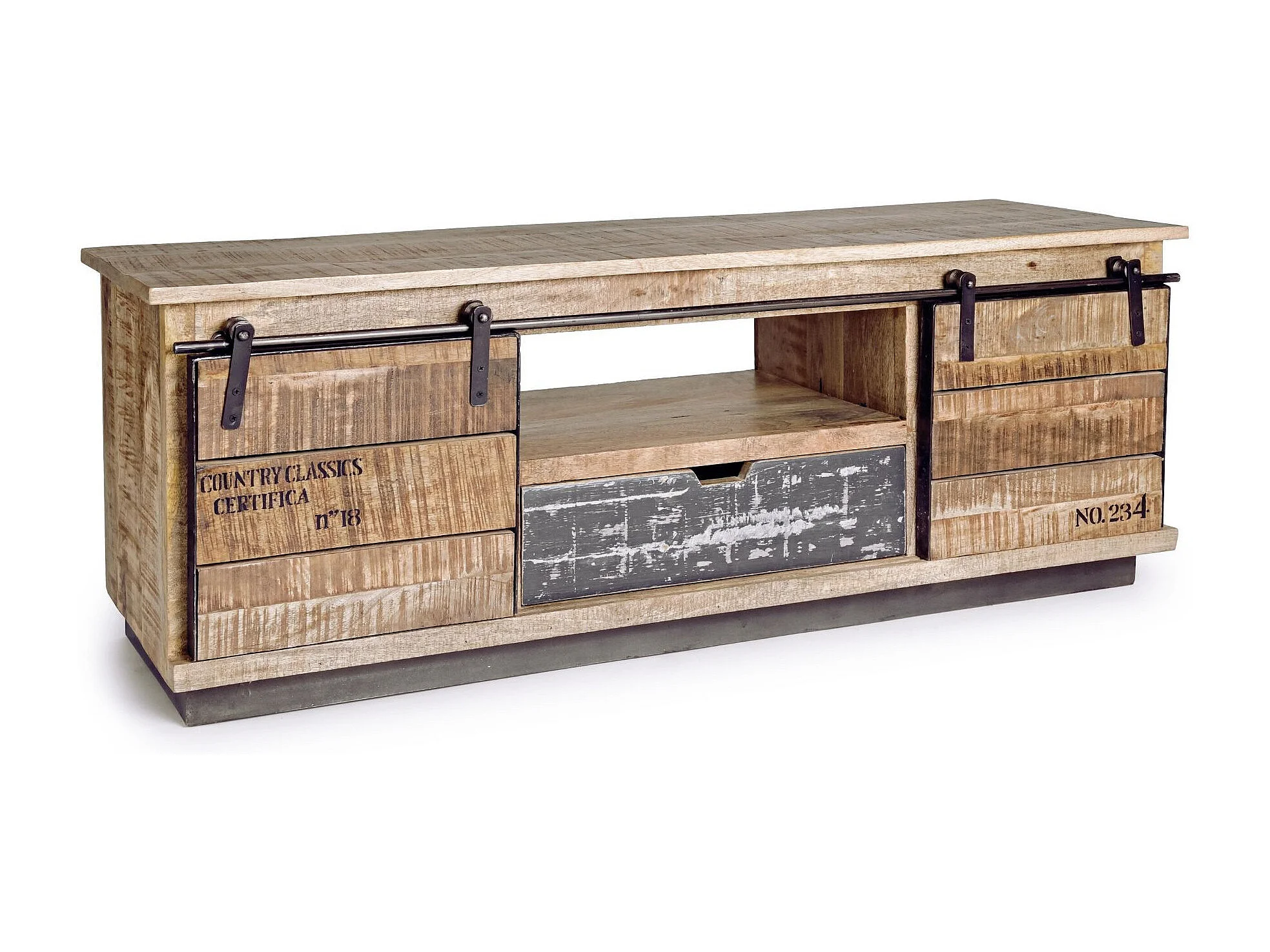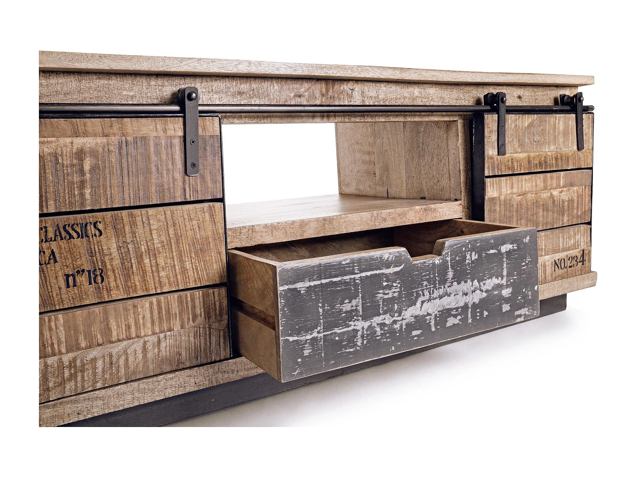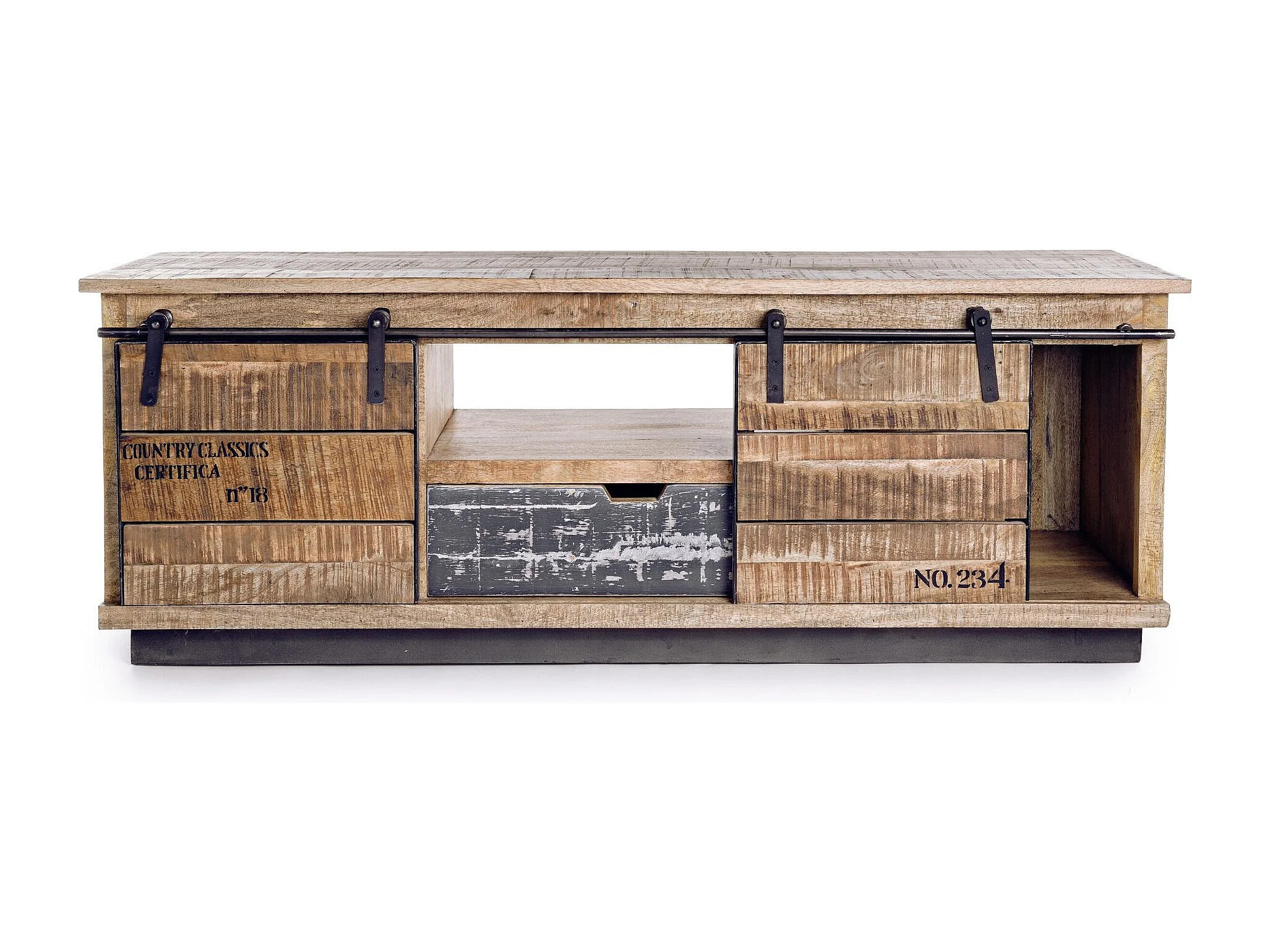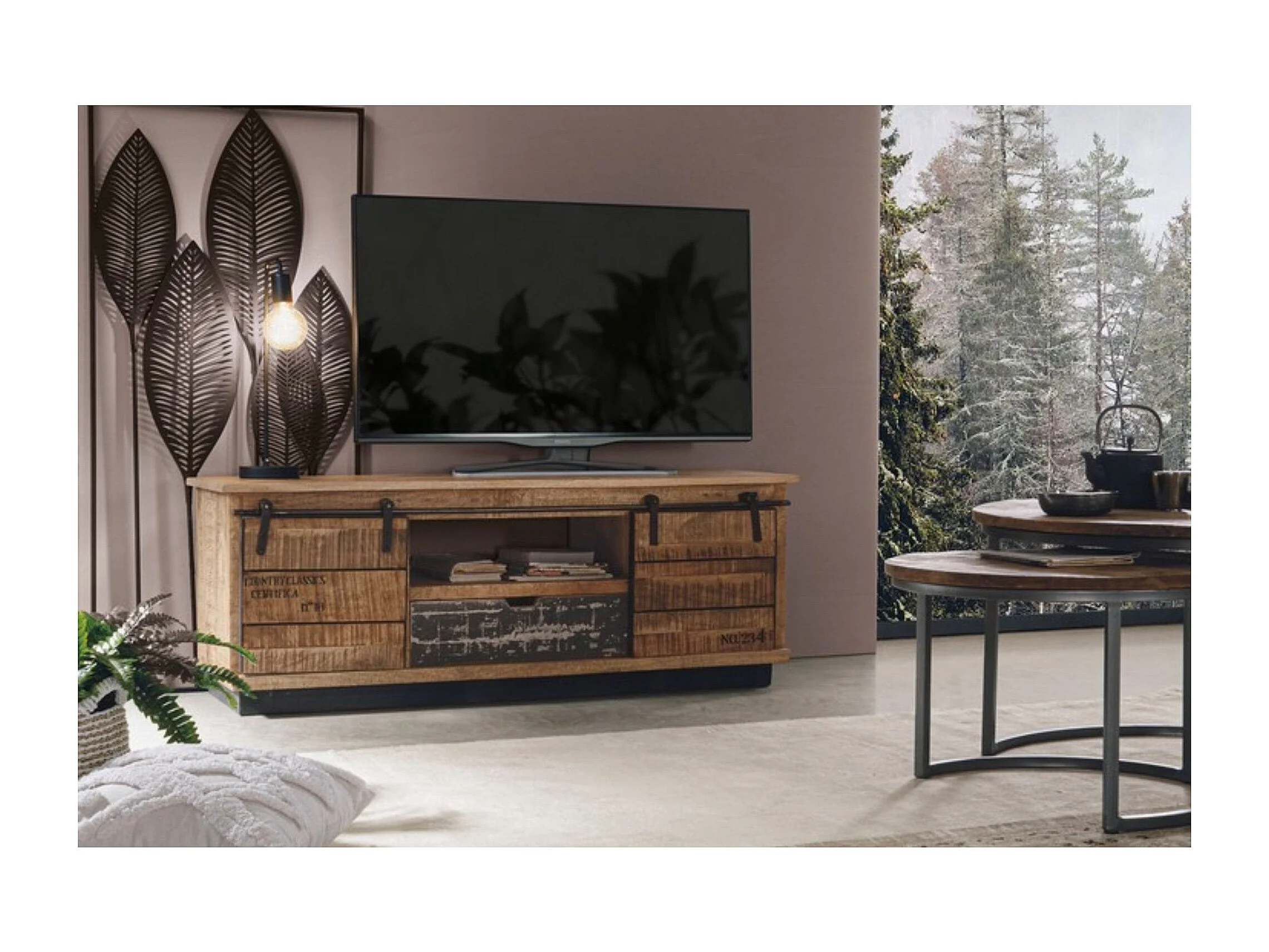 Meuble TV en manguier et métal 2 portes coulissantes 1 tiroir - HARLEM