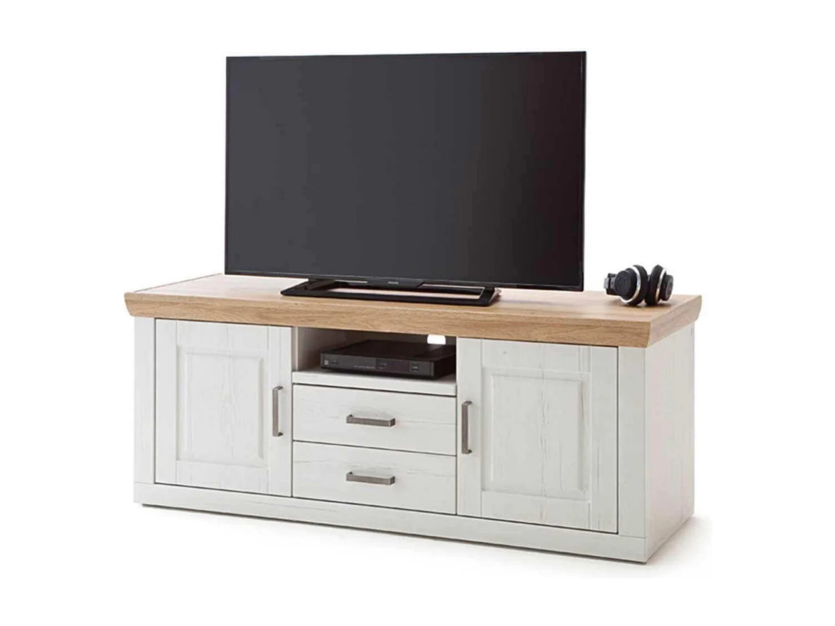 Meuble TV en pin blanc et chêne - L.198 x H.63 x P.52 cm
