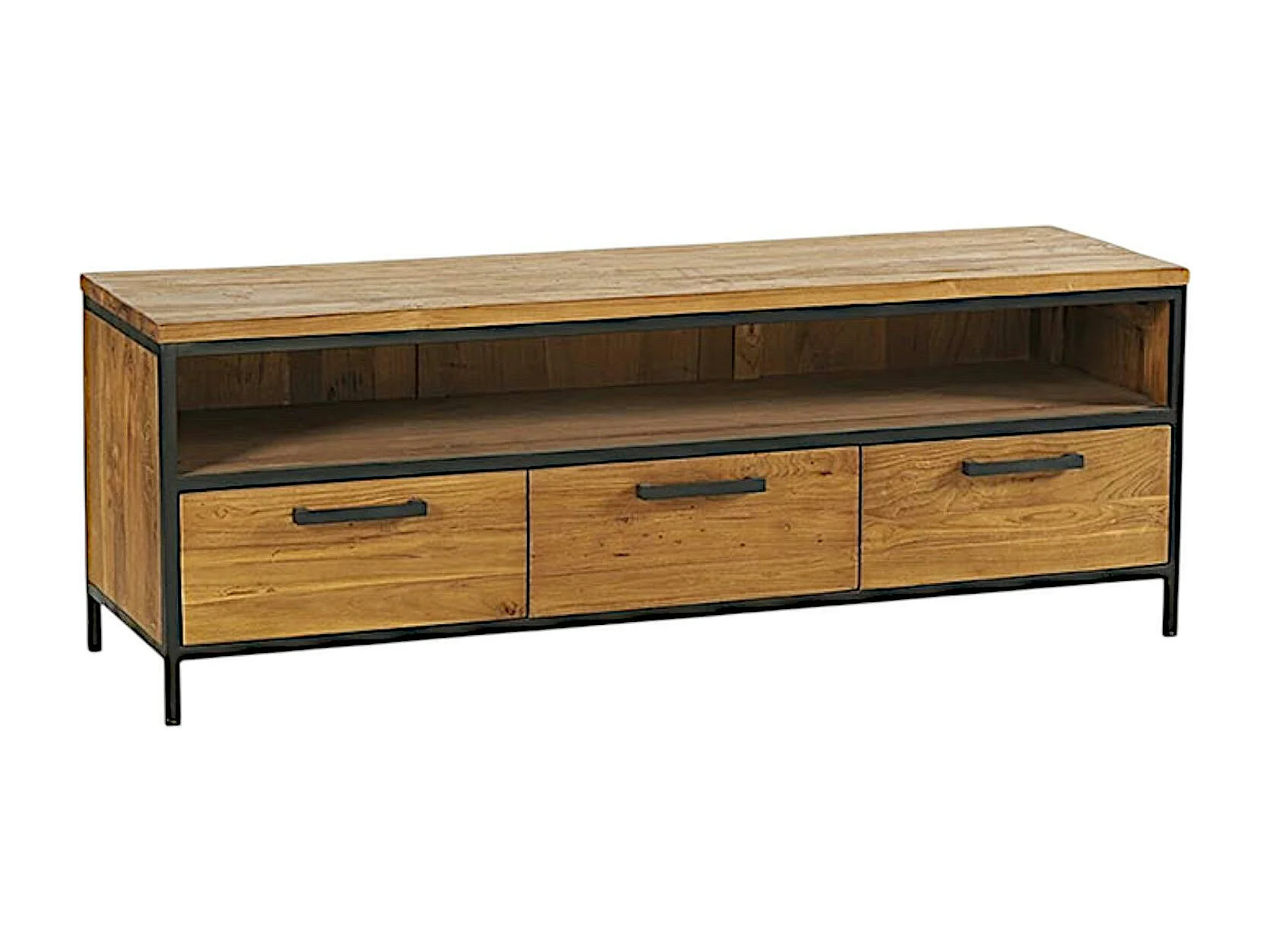 Meuble tv en teck poignées métal 3 tiroirs PUNE